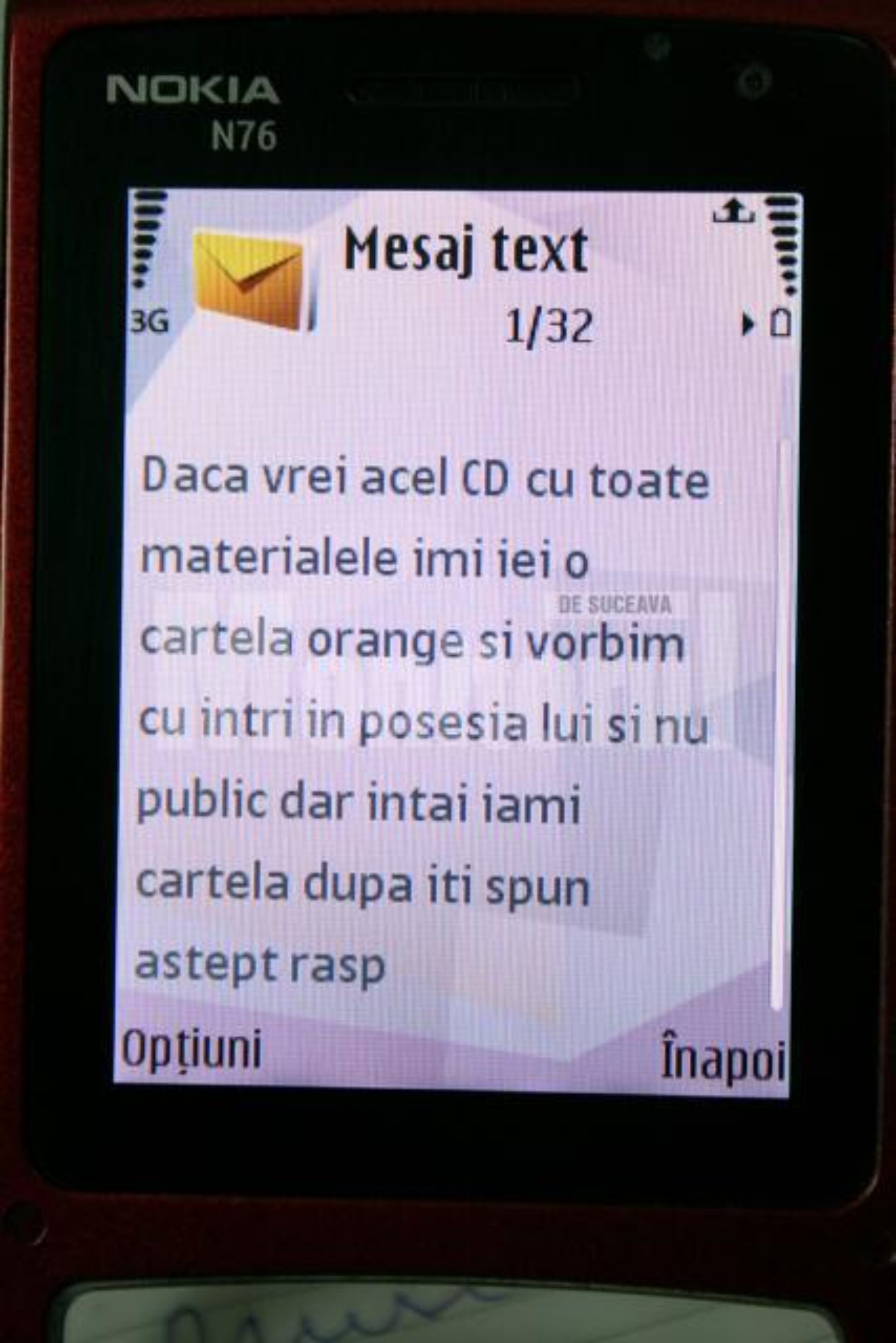 Acesta este mesajul pe care Alexandru Recolciuc l-a primit pe telefonul mobil. Inițial, a crezut că-i vorba de o farsă, motiv pentru care a sunat la redacția ziarului nostru și a cerut lămuriri.