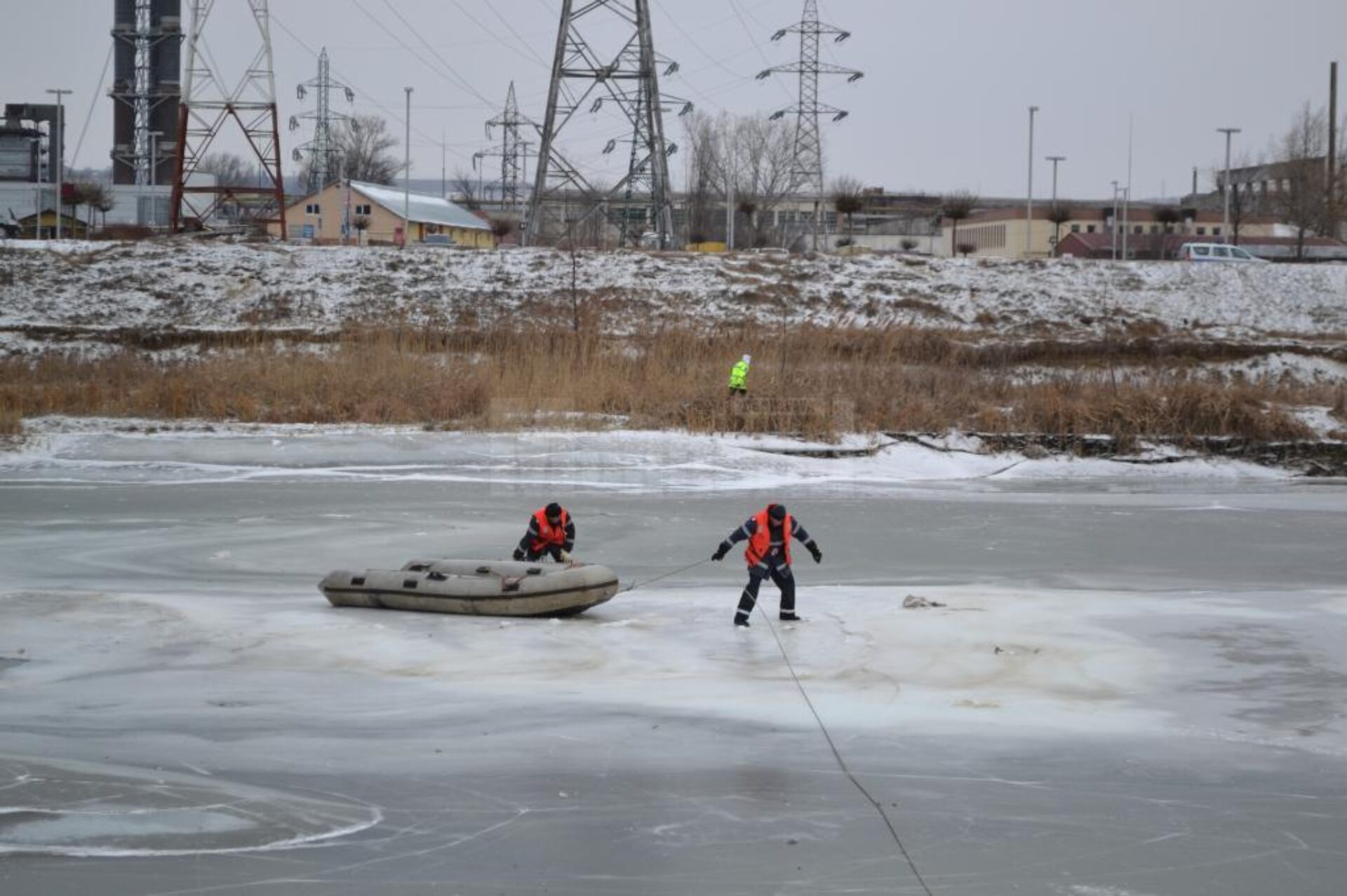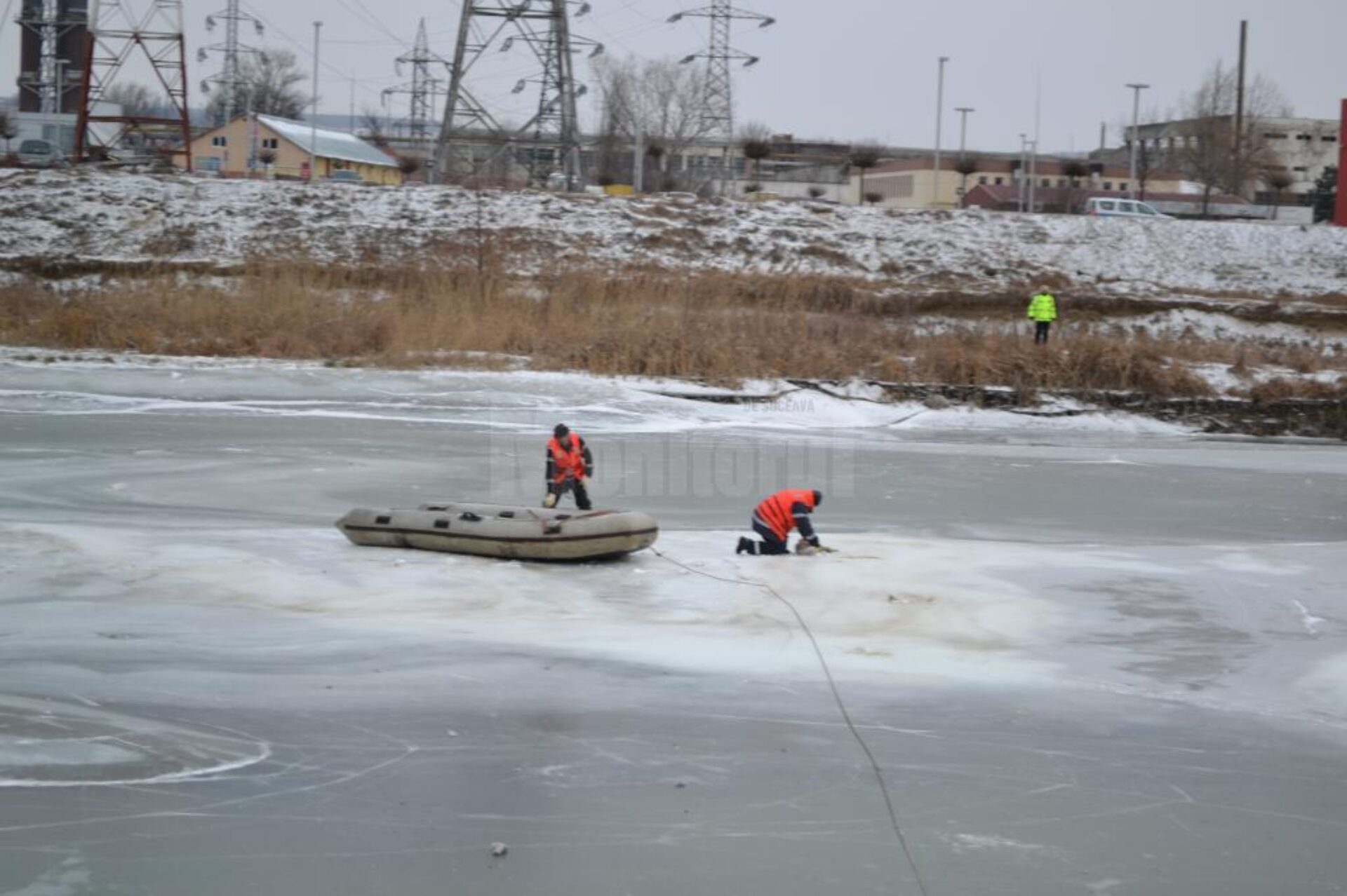 Sâmbătă după-amiază, pompierii suceveni continuau operațiunile de prindere a păsărilor, în ciuda vremii potrivnice, cu ger năprasnic și vânt foarte puternic.