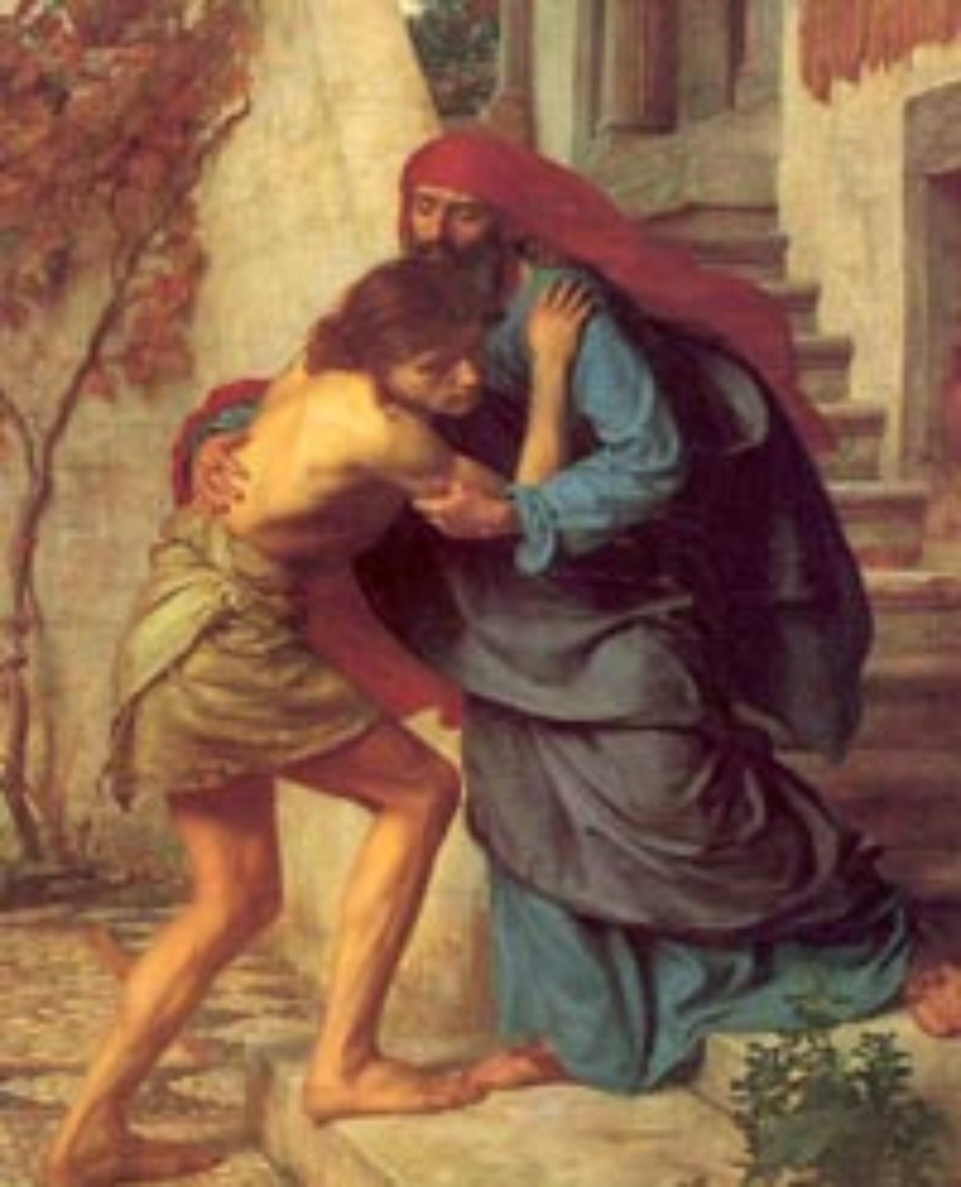 Aduceți degrabă haina lui cea dintâi și-l îmbrăcați și dați inel în mâna lui și încălțăminte în picioarele lui; și aduceți vițelul cel îngrășat și-l junghiați și, mâncând, să ne veselim. Căci acest fiu al meu mort era și a înviat, pierdut era și s-a aflat.”