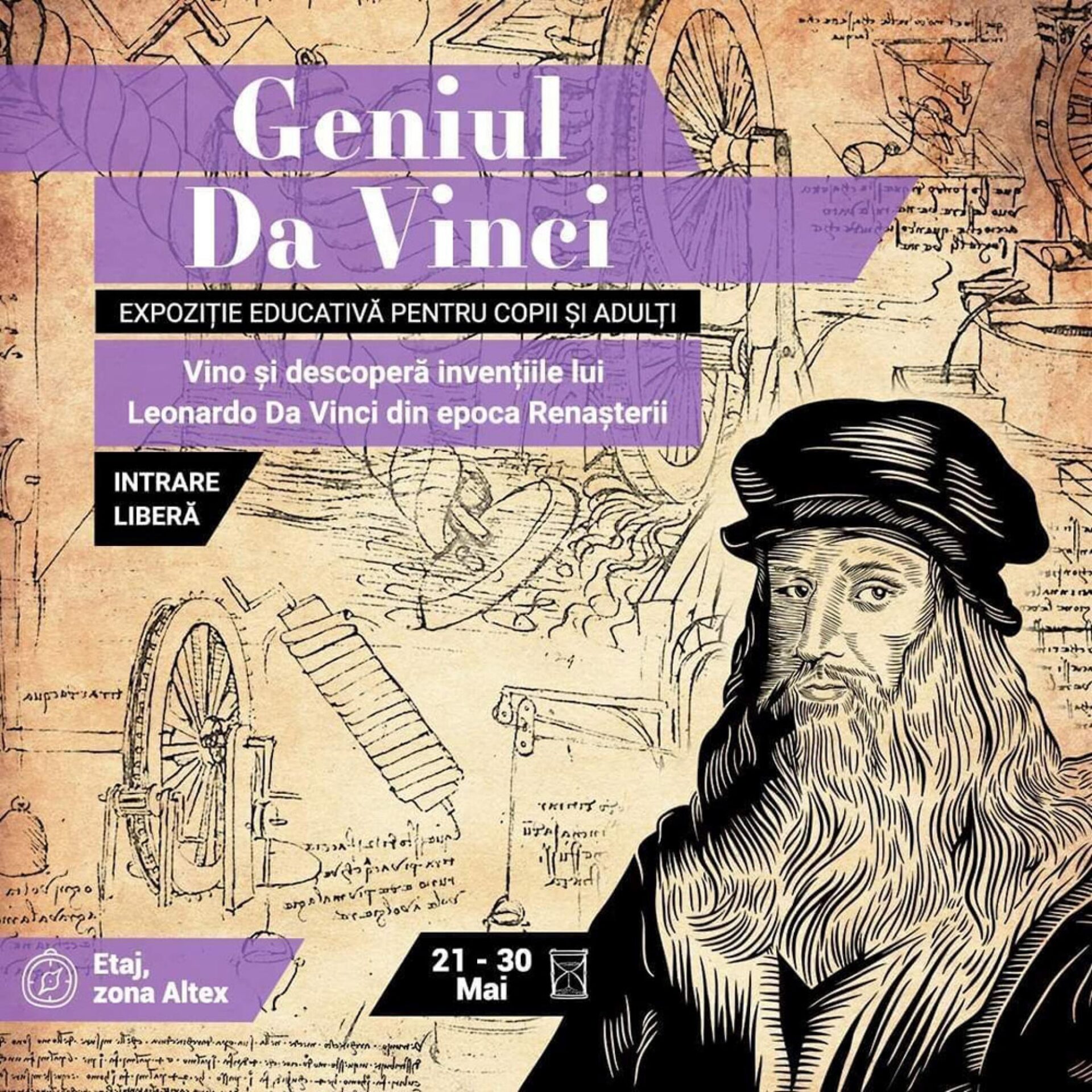 Iulius Mall Suceava este gazda unei expoziții unice, care prezintă geniul lui Leonardo da Vinci ca inventator și pictor. Inedita expoziție reunește replicile a 20 de modele de mașinării, proiectate acum mai bine de 500 de ani de cea mai importantă figură culturală a Renașterii, dar sunt prezentate și șase reproduceri la dimensiuni originale ale unor picturi celebre ale sale. Expoziția are loc în perioada 21 – 30 mai 2021, iar intrarea este liberă.