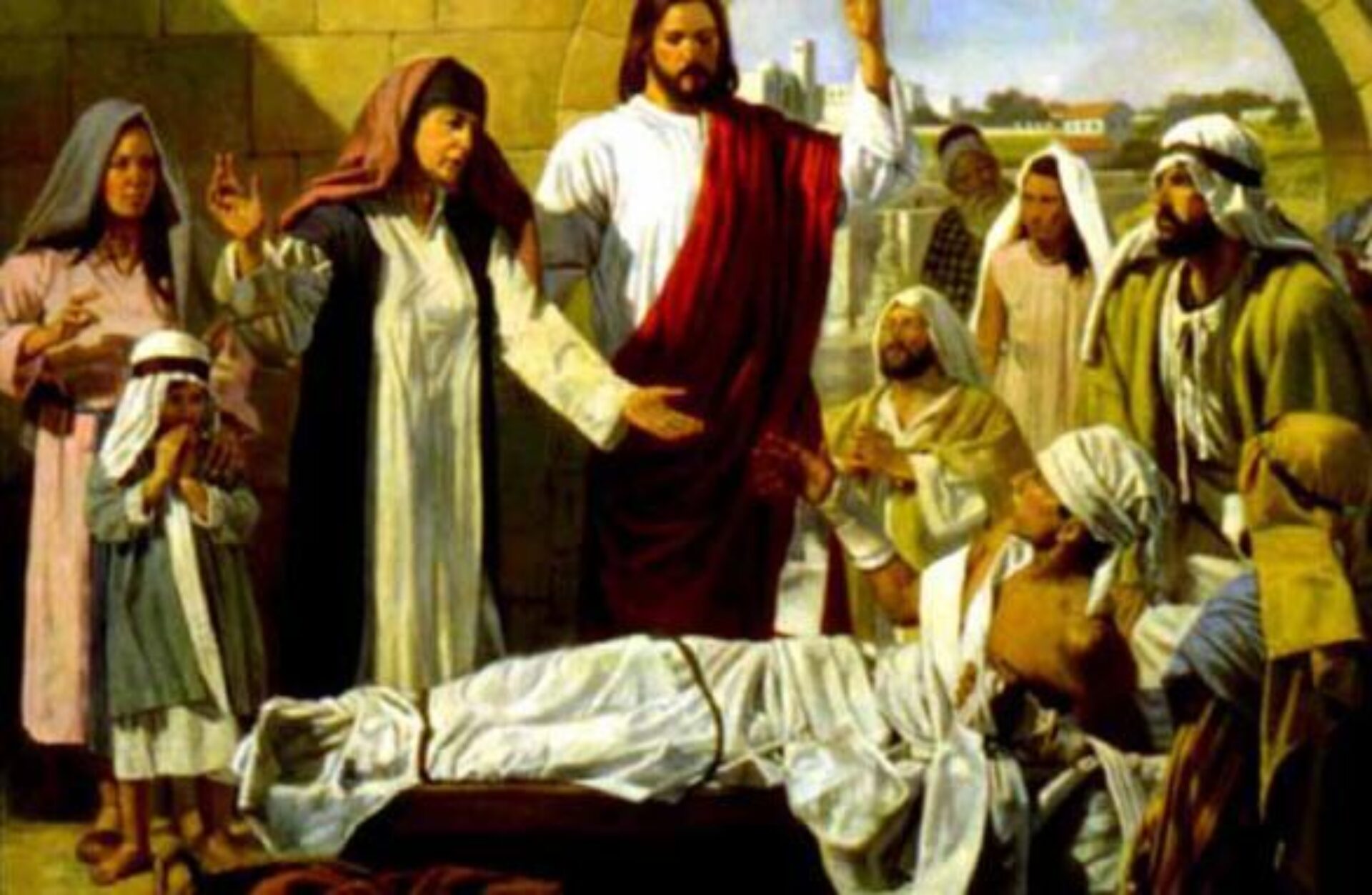 Tinere, ție îți zic, scoală-te ! Iisus a poruncit băiatului în numele Său, iar nu cum au făcut profeții Ilie și Elisei, care s-au rugat lui Dumnezeu să învie pe cel mort. Aceia erau slujitorii Dumnezeului Celui Viu, iar acesta este Unul-Născut Fiul Lui. Cu puterea Sa îi poruncește Domnul băiatului să se întoarcă la viață, să se ridice din patul morții.