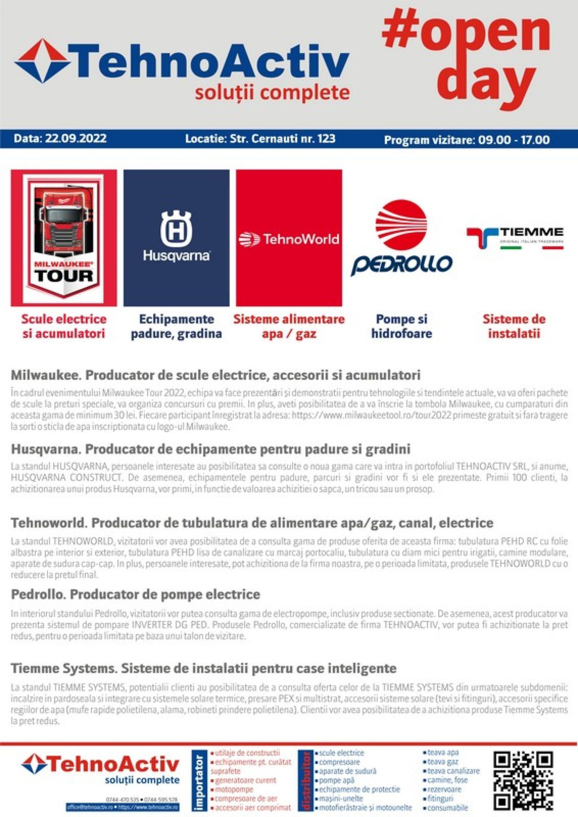 Stimate partener, TEHNOACTIV S.R.L. are plăcerea de a vă invita la un nou eveniment de tip “Open Days”, în locația cunoscută, din str. Cernăuți nr. 123, loc. Suceava, jud. Suceava, în data de 22.09.2022, începând cu orele 09.00 și până la orele 17.00.