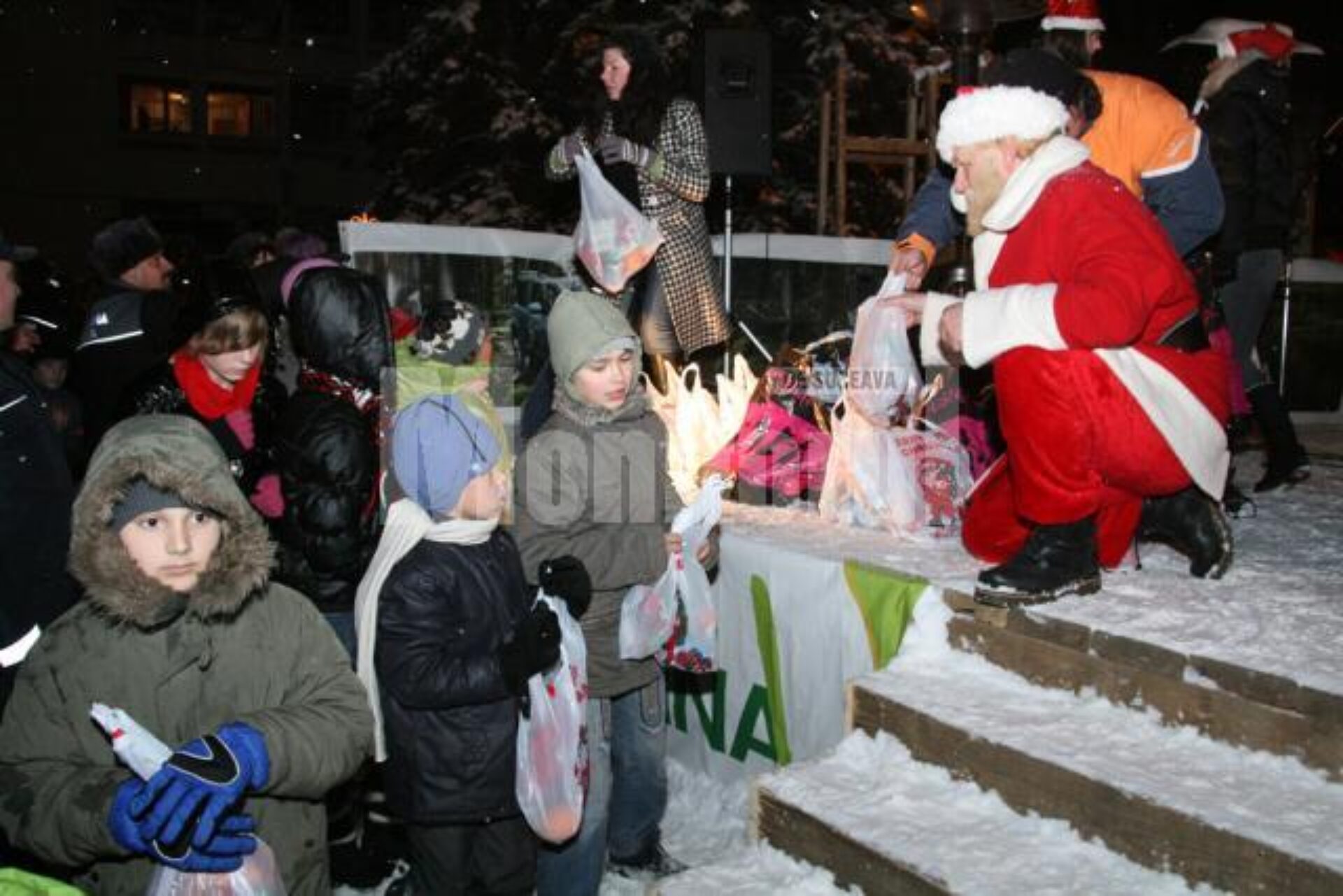 Peste 1.000 de suceveni au venit împreună cu copiii lor sâmbătă seara la deschiderea Orășelului Copiilor din centrul Sucevei, acolo unde era așteptată sania lui Moș Crăciun, care urma să împartă cadouri celor mici. La eveniment a fost prezent și primarul Sucevei, Ion Lungu, care înainte de împărțirea darurilor pentru copii i-a colindat împreună cu fanfara primăriei pe sucevenii veniți în centrul Sucevei.