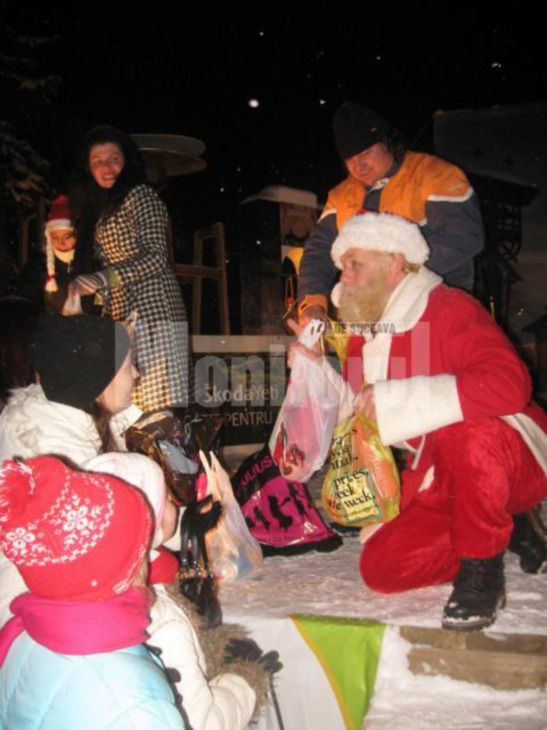 Imediat după colindă, în mijlocul micuților a venit Moș Crăciun, care de pe scena din centrul Sucevei a început să împartă daruri copiilor. În total, Moșul a împărțit peste 1.800 de cadouri, dulciuri, jucării și reviste pentru copii. De precizat că toate cadourile au fost oferite cu sprijinul Primăriei Suceava, al Fundației Ana, împreună cu Asociația Juventus. „Am vrut să marcăm și anul acesta deschiderea Orășelului Copiilor. Chiar dacă vremurile sunt așa cum sunt, am vrut să oferim și anul acesta cadouri copiilor și consider că gestul și intenția sunt de apreciat”, a spus Ion Lungu. El a subliniat că până la sfârșitul anului primăria va organiza și alte evenimente pentru suceveni.
