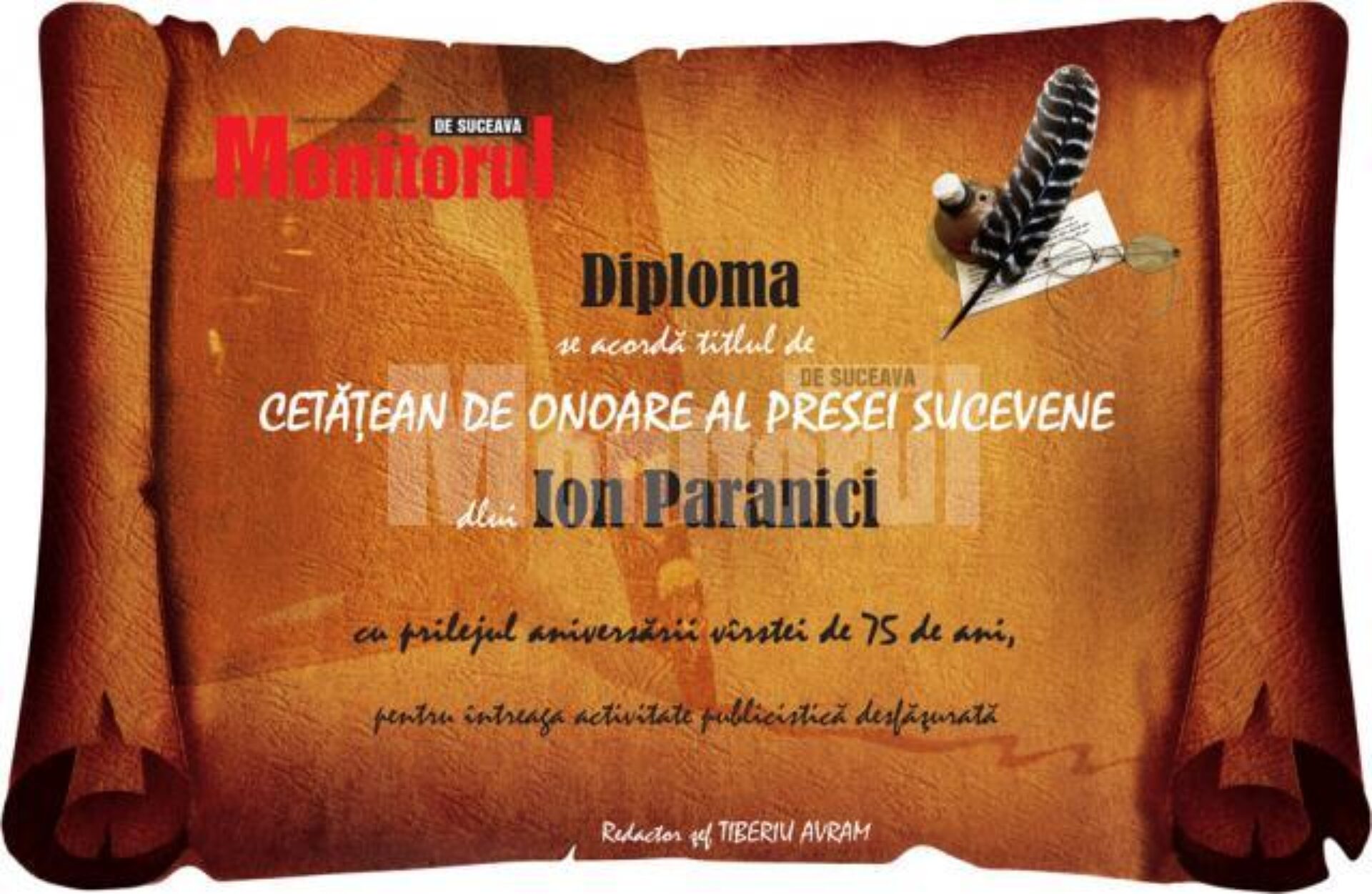 În acest context al conturării portretului lui Ion Paranici, „filolog și om de o sacră delicatețe”, „caligraful regăsirilor în tăcere”, vicepreședintele CJ Suceava, Vasile Ilie, i-a înmânat Diploma și Premiul „Opera Omnia”, o binemeritată recunoaștere și răsplată pentru cel care a fost vreme îndelungată „șeful remarcabil al unei echipe de ziariști profesioniști.