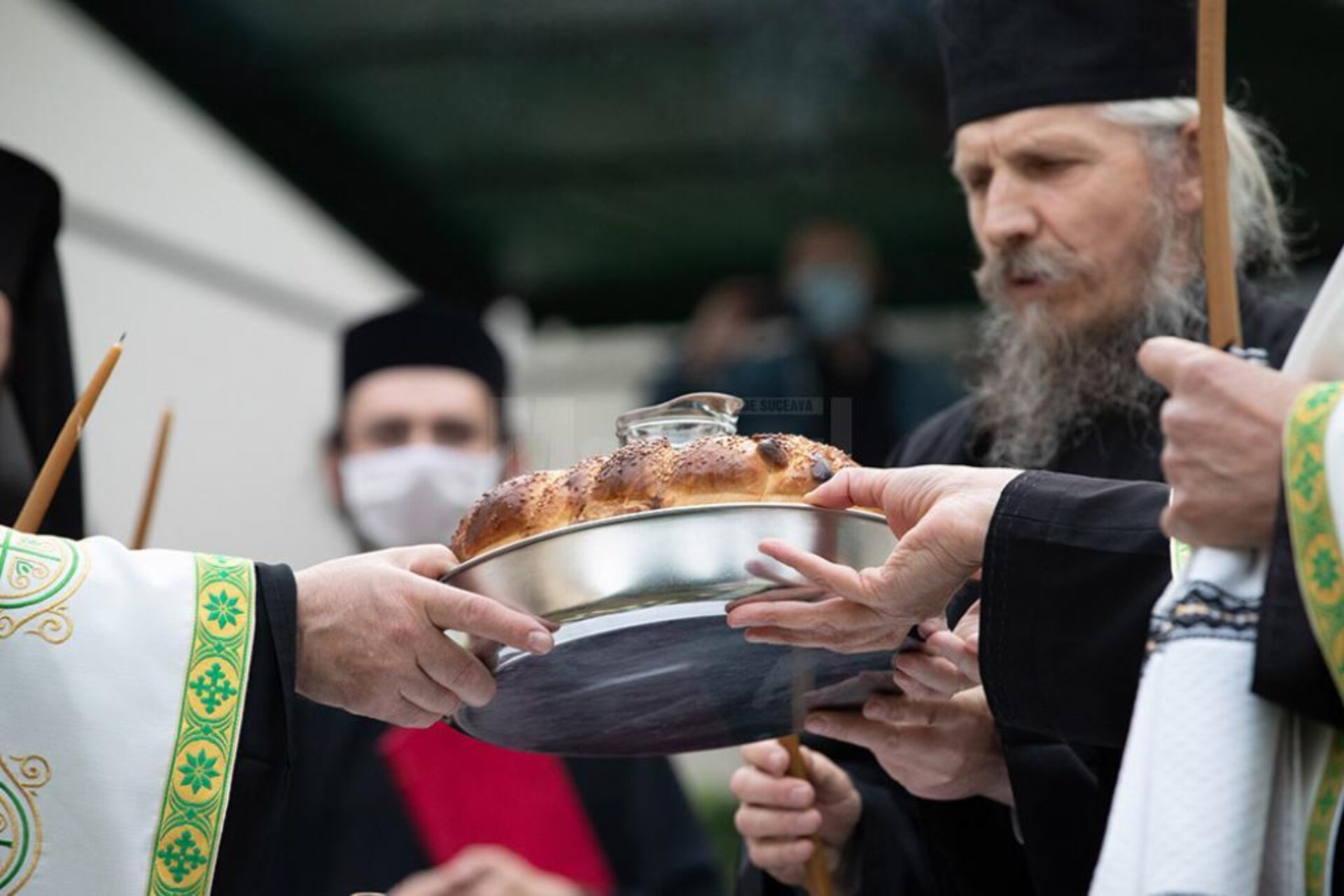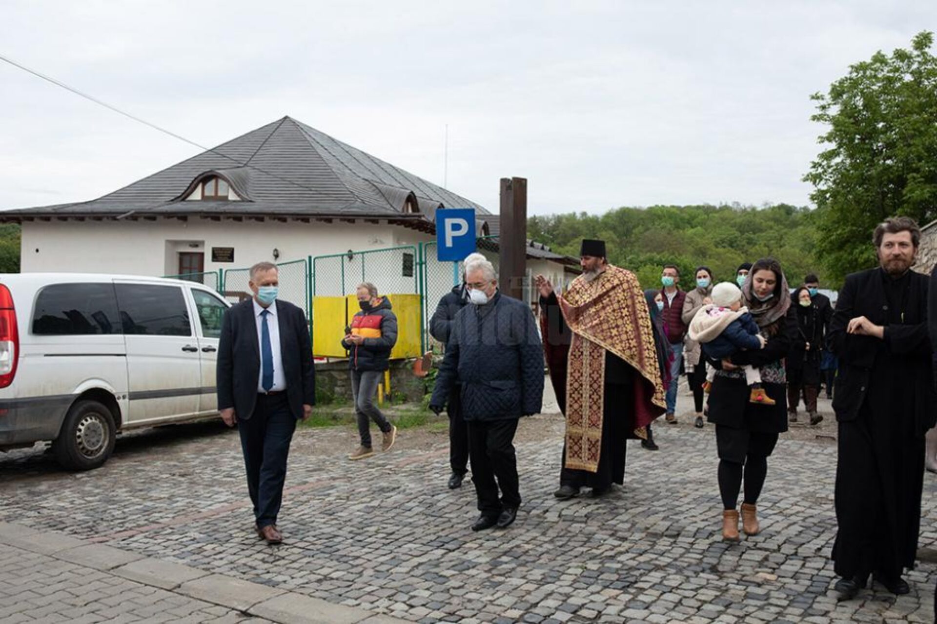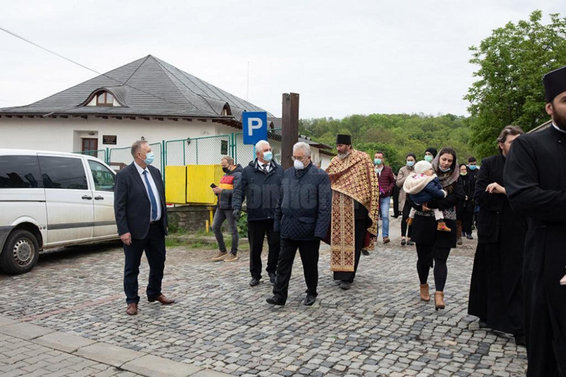Cortegiul a fost așteptat în curtea mănăstirii de preoți, călugări și credincioși, care au vrut să-i transmită un ultim omagiu Arhiepiscopului Pimen, cel care a condus destinele Arhiepiscopiei Sucevei și Rădăuților vreme de aproape 30 de ani. Credincioșii au depus lumânări și flori la intrarea în mănăstire, respectând în același timp regulile de distanțare socială și au participat la o slujbă în curtea Catedralei Arhiepiscopale.