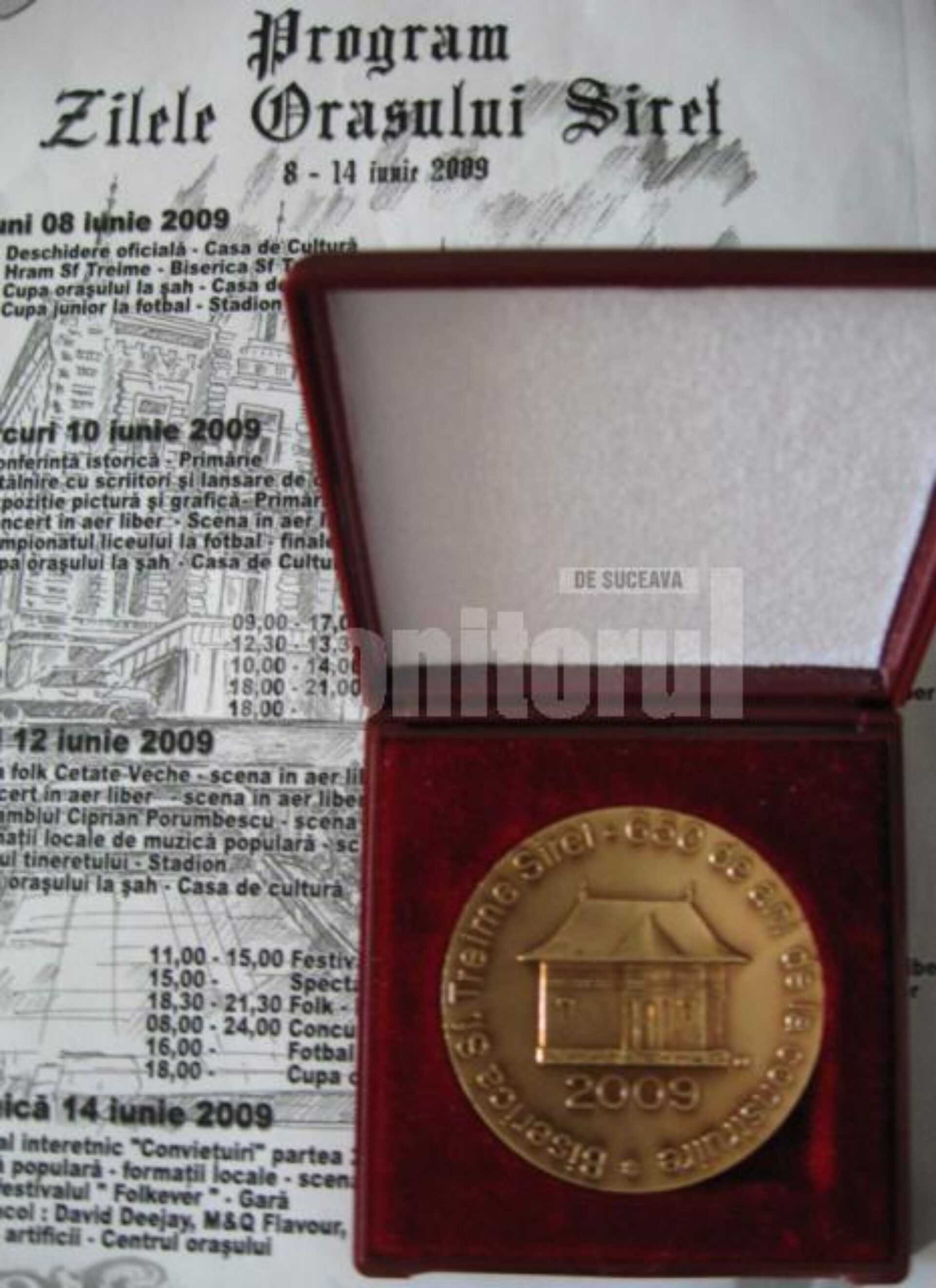 De fapt, atestarea documentară a orașului, ca și împlinirea celor 650 de ani de la construirea Bisericii Sf. Treime („cel mai remarcabil monument istoric de la răsărit de Carpați”, așa cum a subliniat dr. Florin Hău), sunt momentele marcate pe medalia realizată la Monetăria Statului, medalie care a fost oferită de primarul Adrian Popoiu invitaților de seamă ai manifestării.