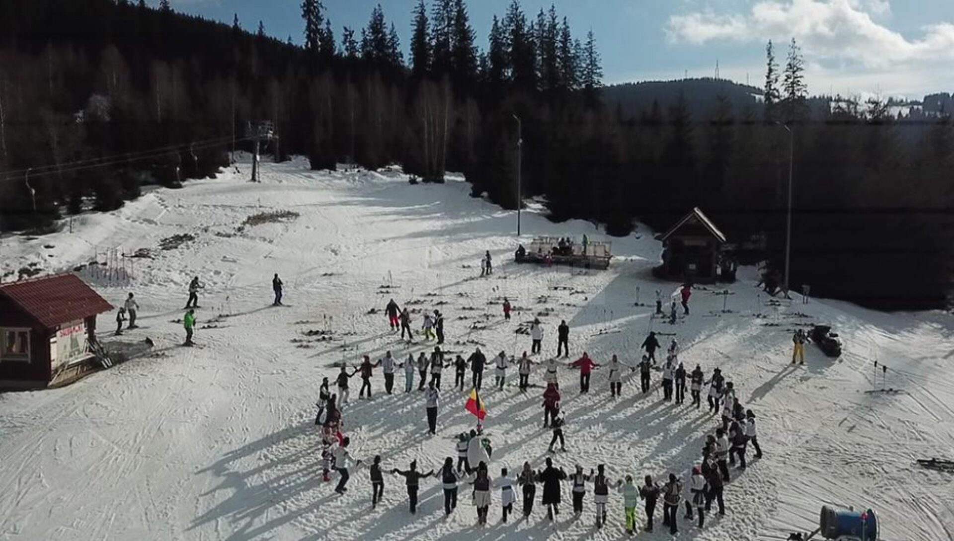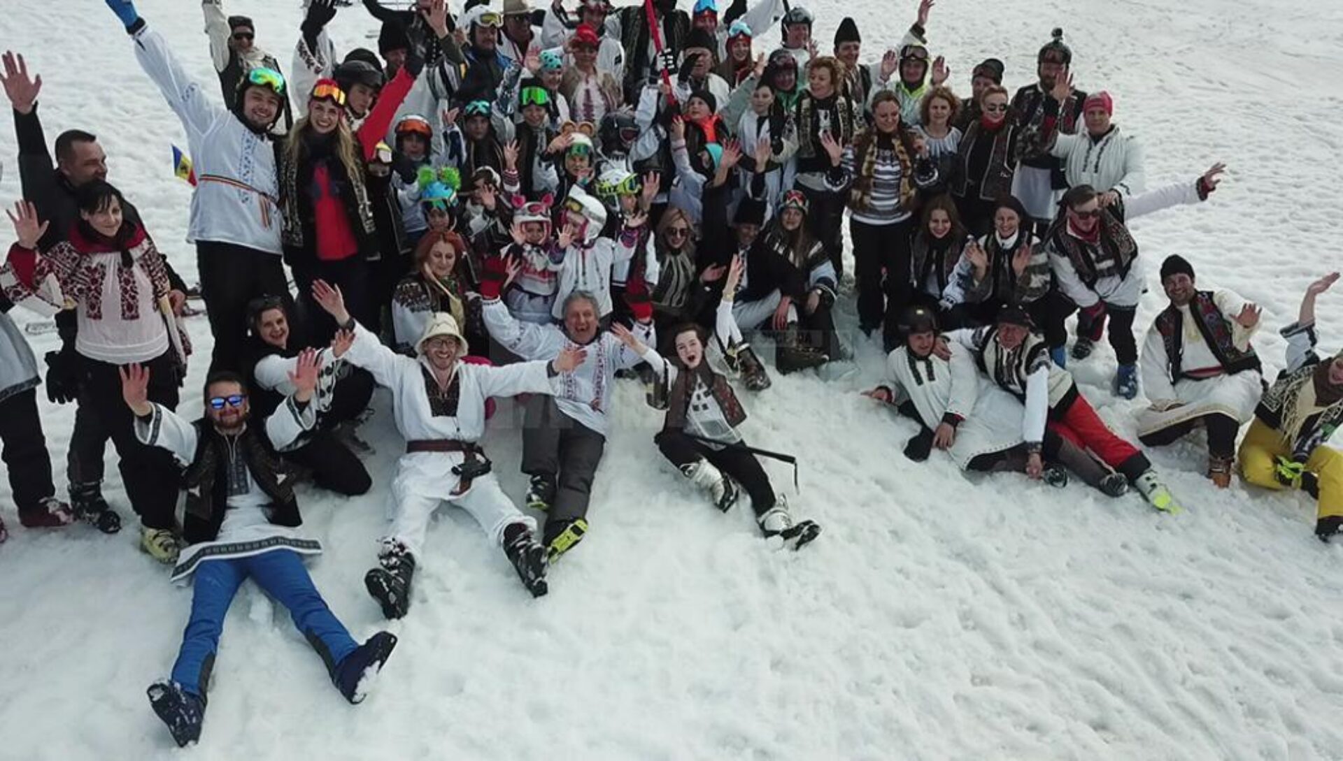 Practic, aceasta a fost o modalitate inedită de a marca finalul sezonului de schi la Vatra Dornei, pentru că iubitorii sporturilor de iarnă, îmbrăcați în straie populare și încălțați cu clăpari, purtând cu mândrie steagul României, au dansat hora în zăpadă și au dat ultimele ture pe pârtie.