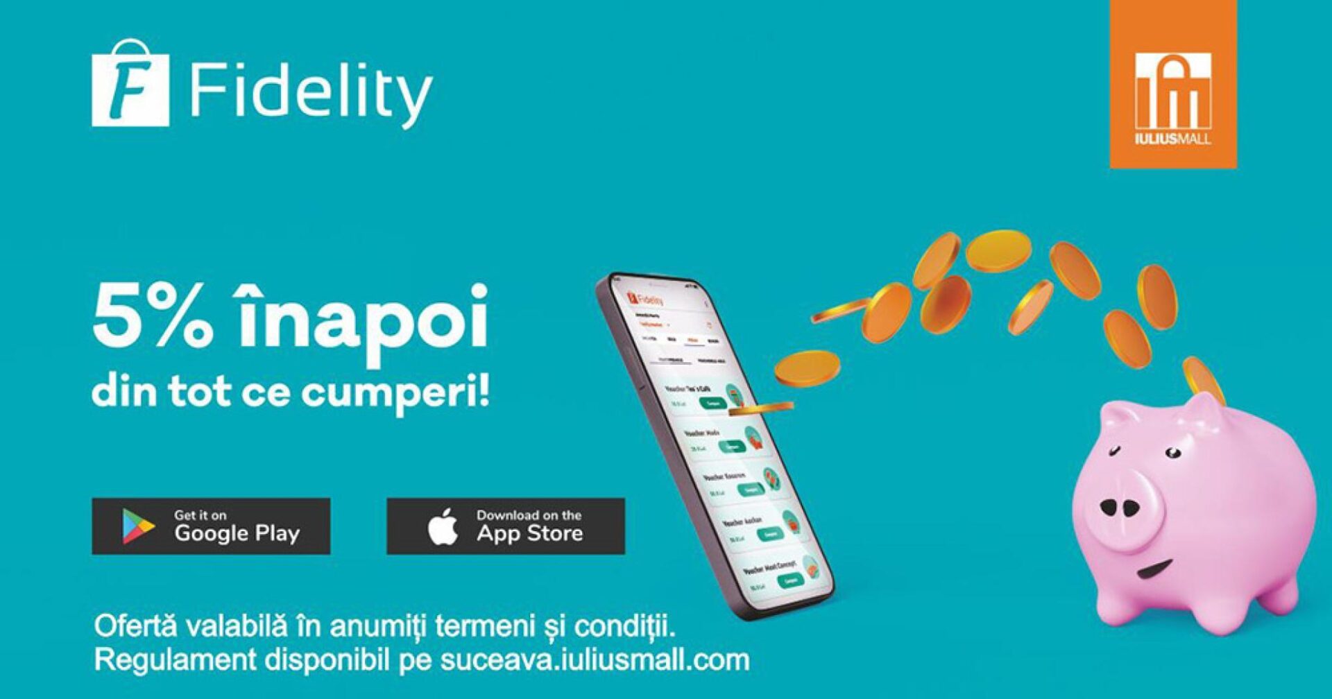 Iulius Mall îți oferă înapoi 5% din valoarea cumpărăturilor pe care le faci, în vouchere cadou, prin aplicația Fidelity