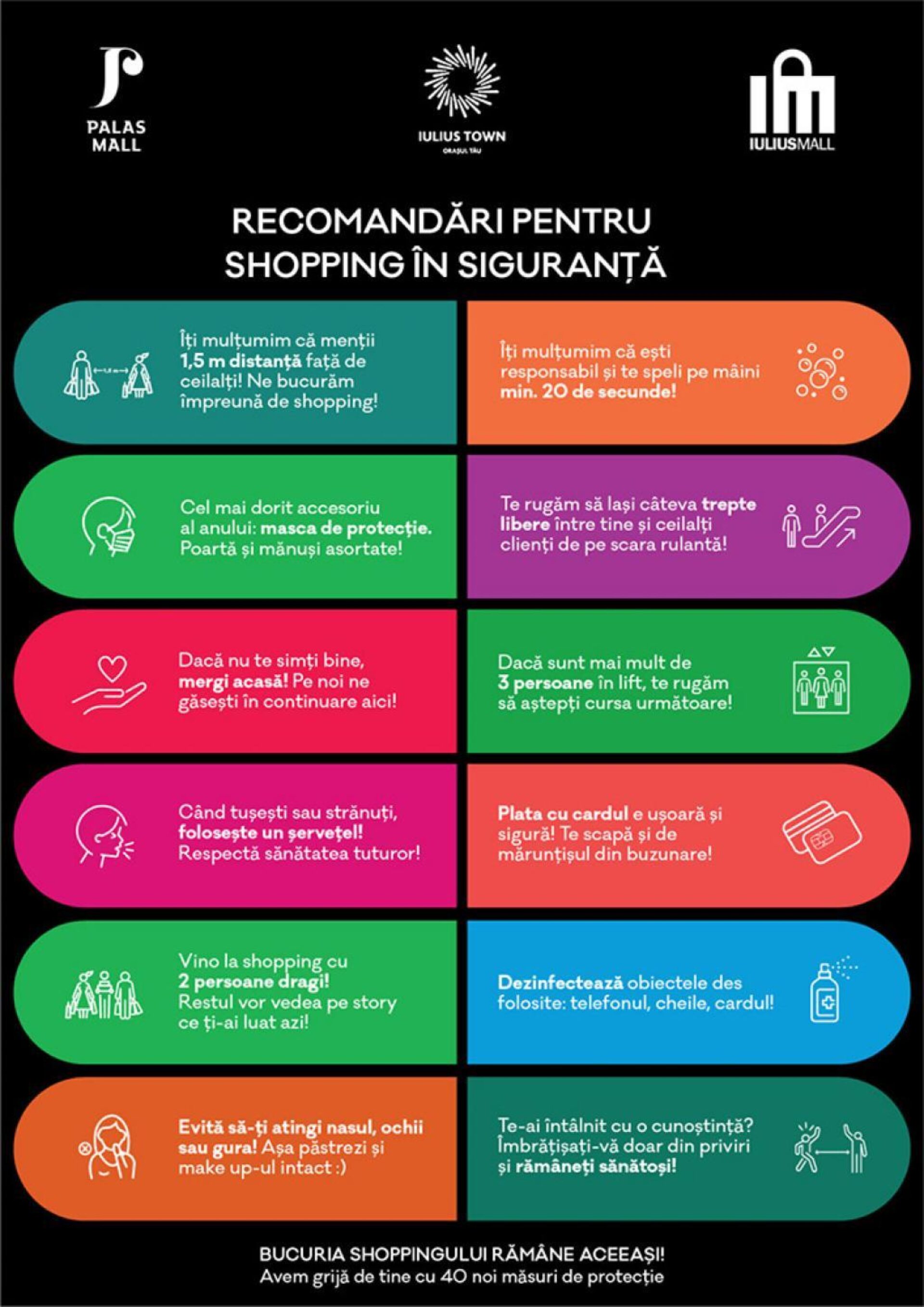 Mesajele vor rula și prin intermediul sistemului radio intern. Lista completă a măsurilor este disponibilă pe www.iuliusmall.com/suceava/siguranta. Programul Iulius Mall Suceava va fi cel normal, în intervalul orar 10.00-22.00.