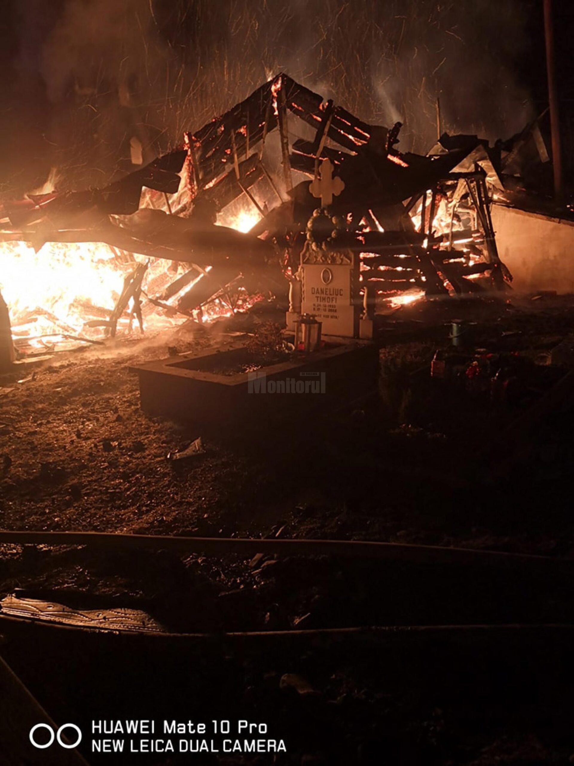 Din păcate biserica construită din lemn și învelită cu tablă, cu o suprafață de circa 200 de metri pătrați, a ars în totalitate în timpul incendiului, cu toate obiectele de cult, cărțile, veșmintele preoțești și mobilierul aflate în interior. Flăcările au afectat grav și clădirea din lemn a clopotniței, pe o suprafață de 100 de metri pătrați, degradând și clopotele montate la nivelul superior. Eforturile făcute de pompieri au dus la salvarea structurii de rezistență a clopotniței. După circa 6 ore de intervenție, pompierii au reușit să lichideze și ultimele focare ale incendiului, cercetările efectuate de ei la locul izbucnirii incendiului stabilind că acesta a fost provocat de jarul aprins căzut din camera de ardere a centralei termice, montată într-o încăpere ridicată din BCA și lipită de clădirea bisericii.