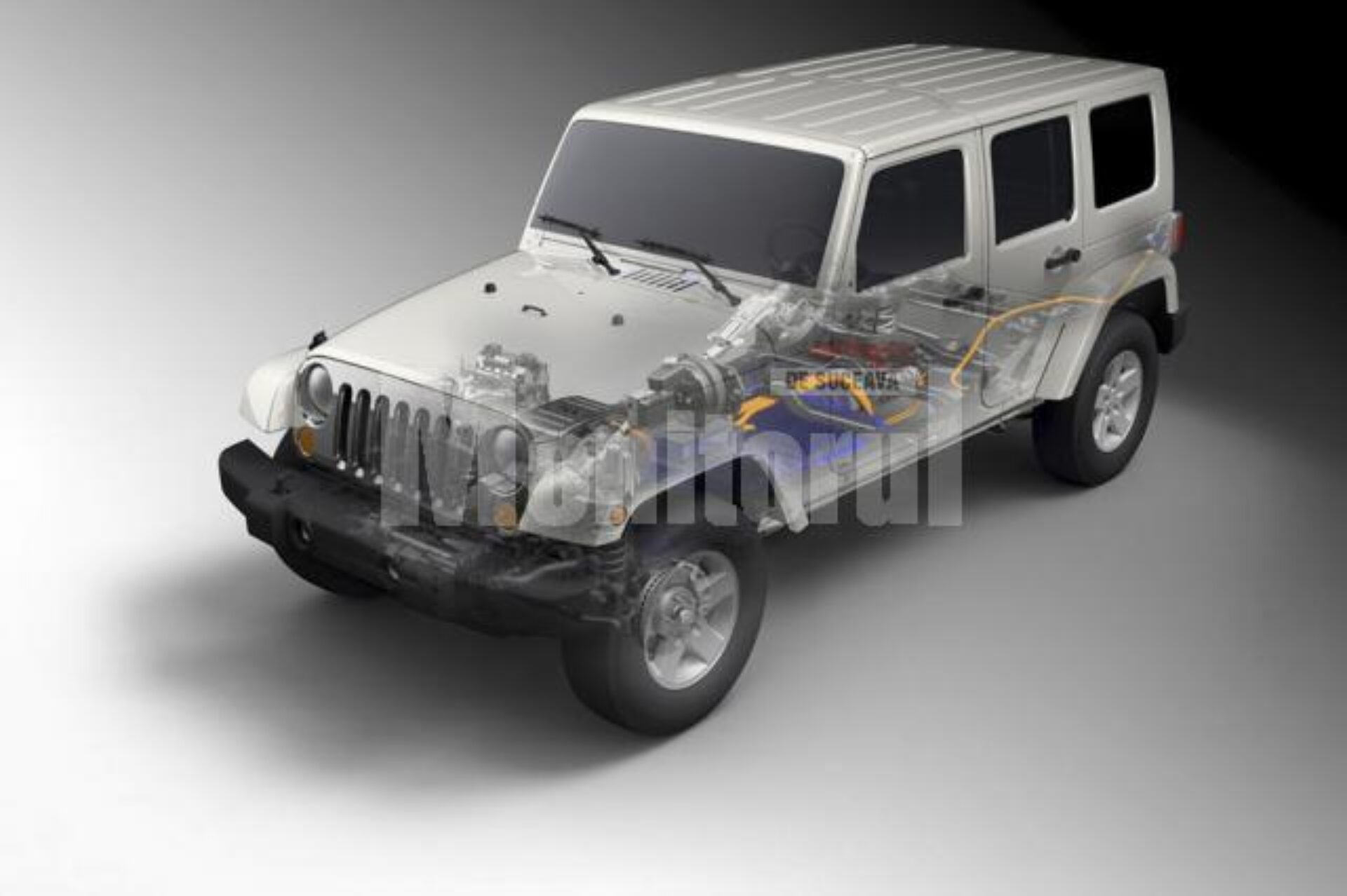 Modelul de studiu care va sta la baza viitoarei mașini de serie a fost prezentat recent la Detroit, urmând ca până în 2010 să fie continuate cercetările și testele. Noul concept se numește EV (Electric Vehicule) și este de fapt celebrul Wrangler în patru uși, versiunea cu tracțiune integrală, pe structura căruia s-a montat un motor hibrid. Sistemul de propulsie este cel patentat pe modelul Volt și este format dintr-o unitate turbo de mic litraj ce furnizează 268 CP și un motor electric alimentat de un sistem avansat de acumulatori litiu-ion.