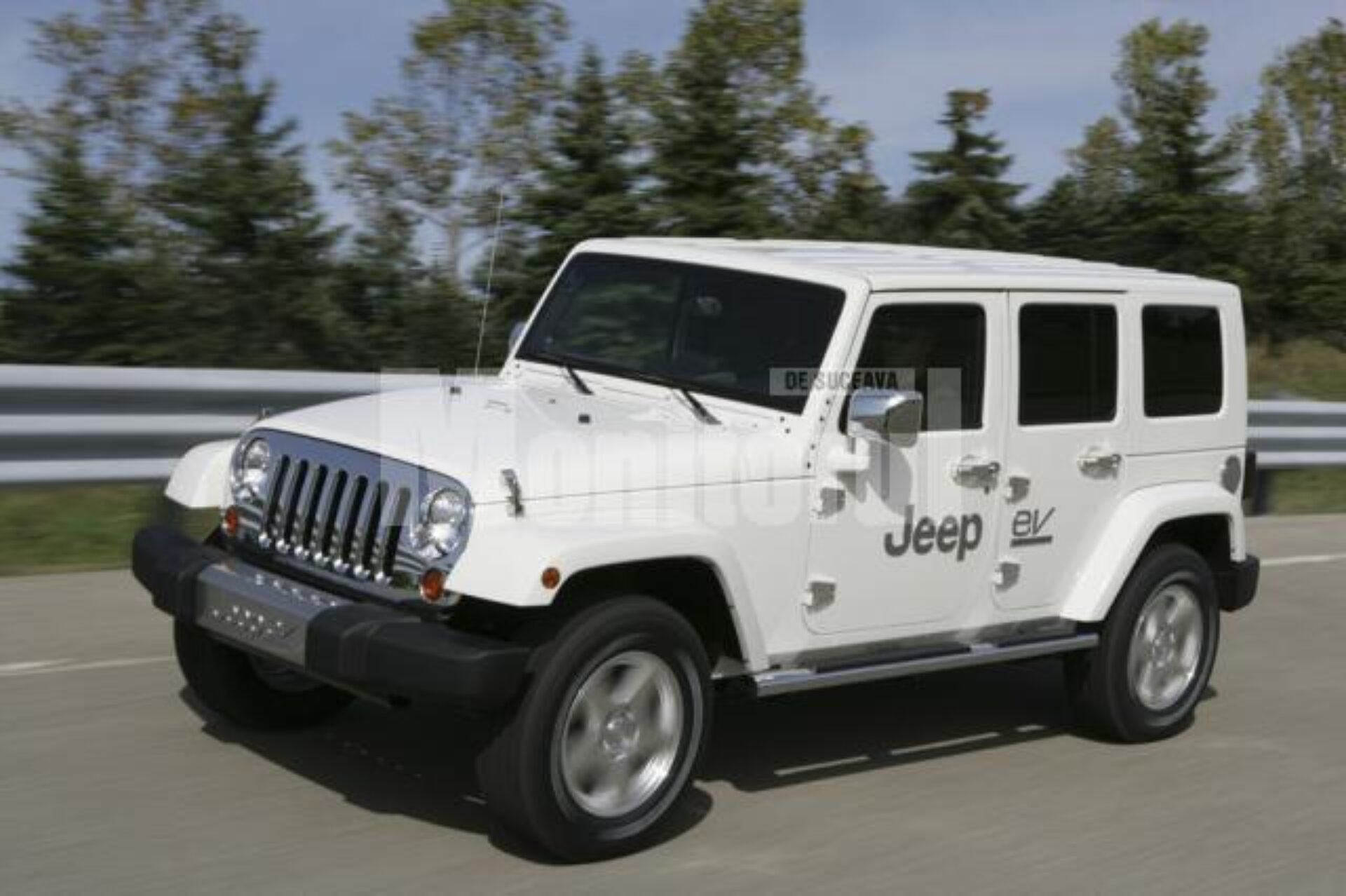 Conceptul se numește EV (Electric Vehicule) și este de fapt celebrul Wrangler în patru uși, versiunea cu tracțiune integrală, pe structura căruia s-a montat un motor hibrid. Sistemul de propulsie este cel patentat pe modelul Volt, și este format dintr-o unitate turbo de mic litraj ce furnizează 268 CP și un motor electric alimentat de un sistem avansat de acumulatori litiu-ion. Prototipul este capabil să parcurgă 65 de kilometri fără a consuma o picătură de combustibil, autonomia oferită de bateriile acumulatoare fiind una destul de decentă, dacă o raportăm la masa mașinii. Ceea ce însă va impresiona este consumul de carburant și distanța parcursă cu Jeep EV, cifre care – dacă prin absurd am elimina sistemul hibrid, ar fi imposibil de atins, chiar și de cel mai economic model cu motor Otto din gama Wrangler.