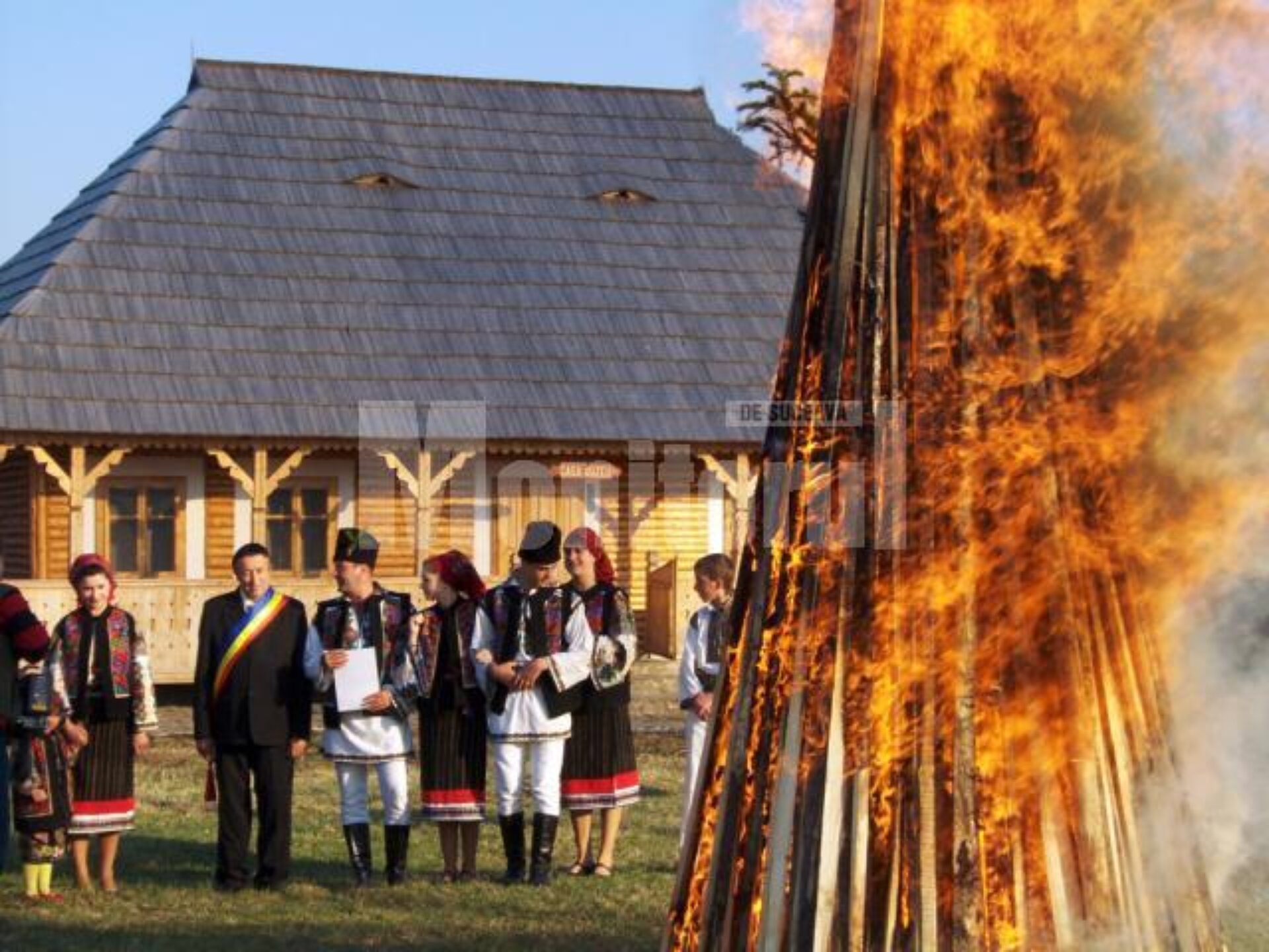 „Focul din Joia Mare” a fost aprins la ora 18,00, în tradiția locală spunându-se că are efect purificator pentru cei prezenți.