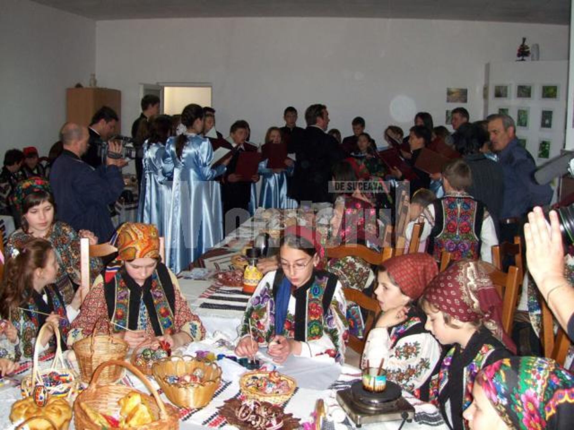 Membrii cercului „Micii meșteșugari”, îndrumați de prof. Dorina Paicu, au prezentat, pe lângă ouă încondeiate, lucrări de pictură și pirogravură.
