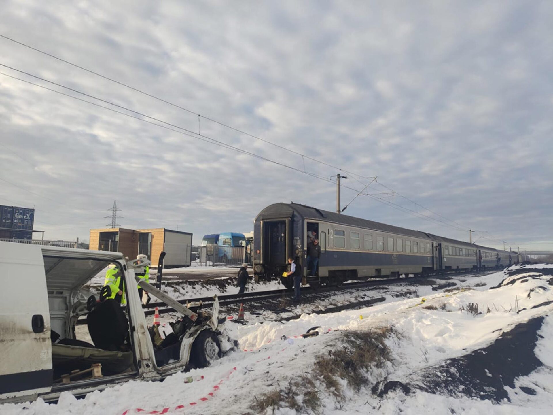 Autoutilitara nu a fost lovită frontal de locomotivă, ci acroșată cu partea dreaptă și proiectată într-un parapet. În urma impactului deosebit de violent, pasagerul din dreapta a fost aruncat în afara mașinii și a fost găsit decedat.