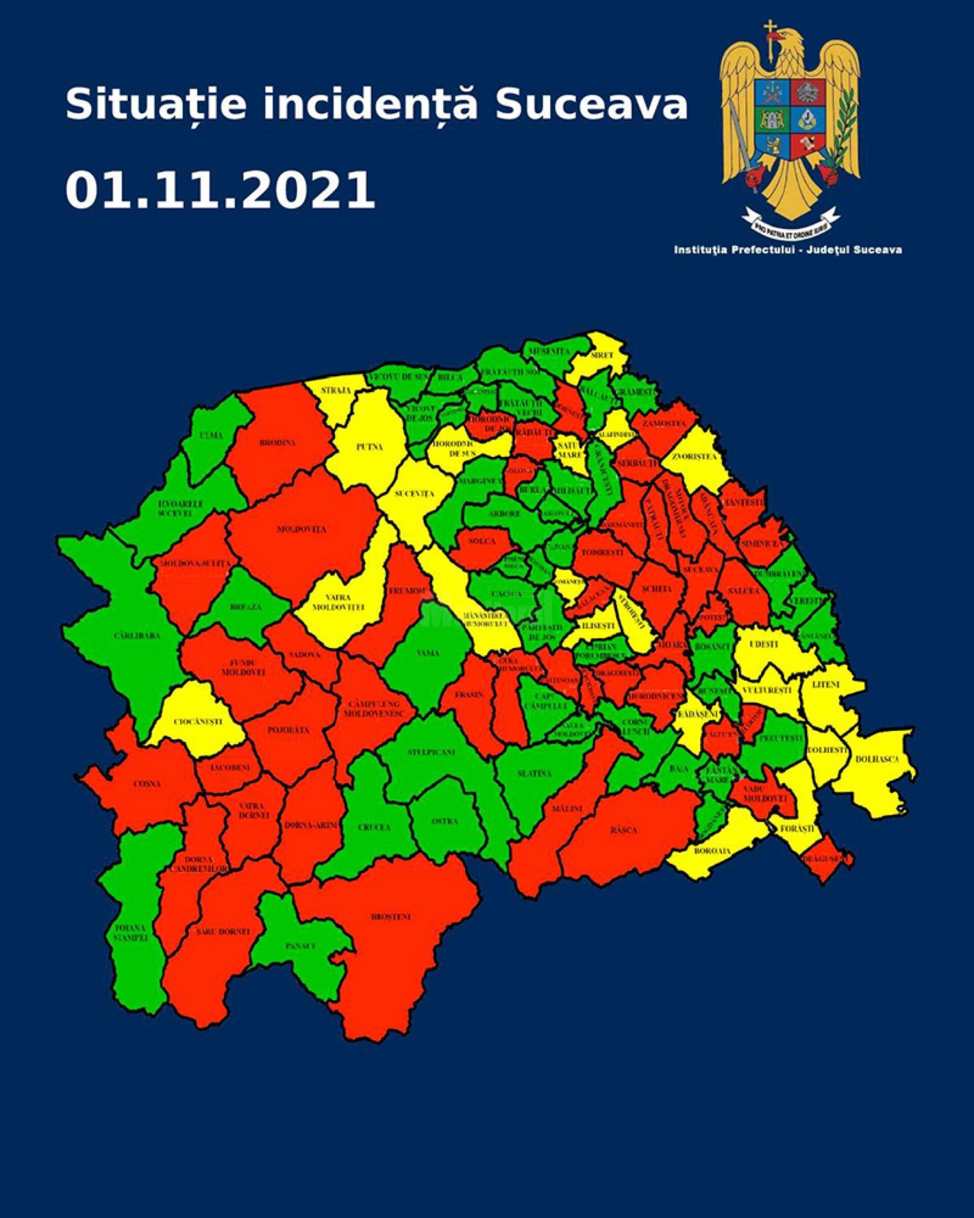La Rădăuți sunt internați 150 de pacienți cu Covid, din care 25 cu forme grave și 12 cu forme critice; Câmpulung Moldovenesc – 42 de pacienți, din care 20 cu forme grave; Gura Humorului – 46 de pacienți; Siret – 12 pacienți; Vatra Dornei – 62 de pacienți, din care 13 cu forme grave și 3 cu forme critice; Fălticeni – 64 de pacienți, din care 4 cu forme critice. În spitalele din județul Suceava sunt internați 553 de pacienți cu Covid.