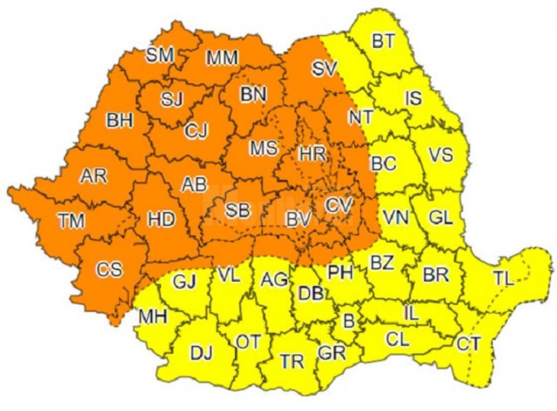 Meteorologii au prelungit, joi, codul galben de vreme rea care vizează întreaga țară, până duminică, la ora 10.00.