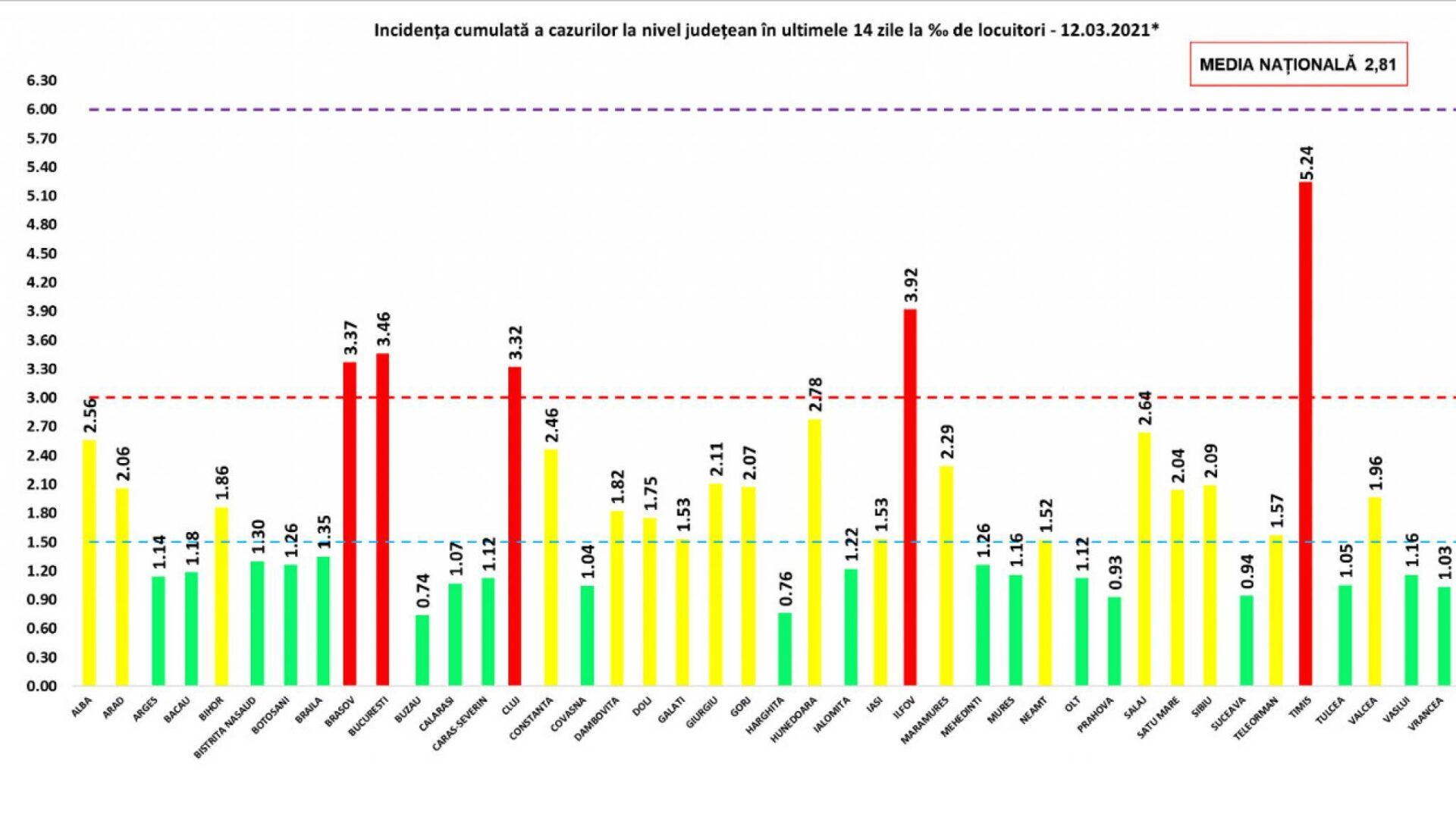În același timp, “vârfurile” îmbolnăvirilor sunt județele Timiș – incidență de 5,24 la mia de locuitori, Ilfov – 3,92 la mie, București – 3,46 la mie, Brașov – 3,37 la mie și Cluj, cu 3,32 la mie.