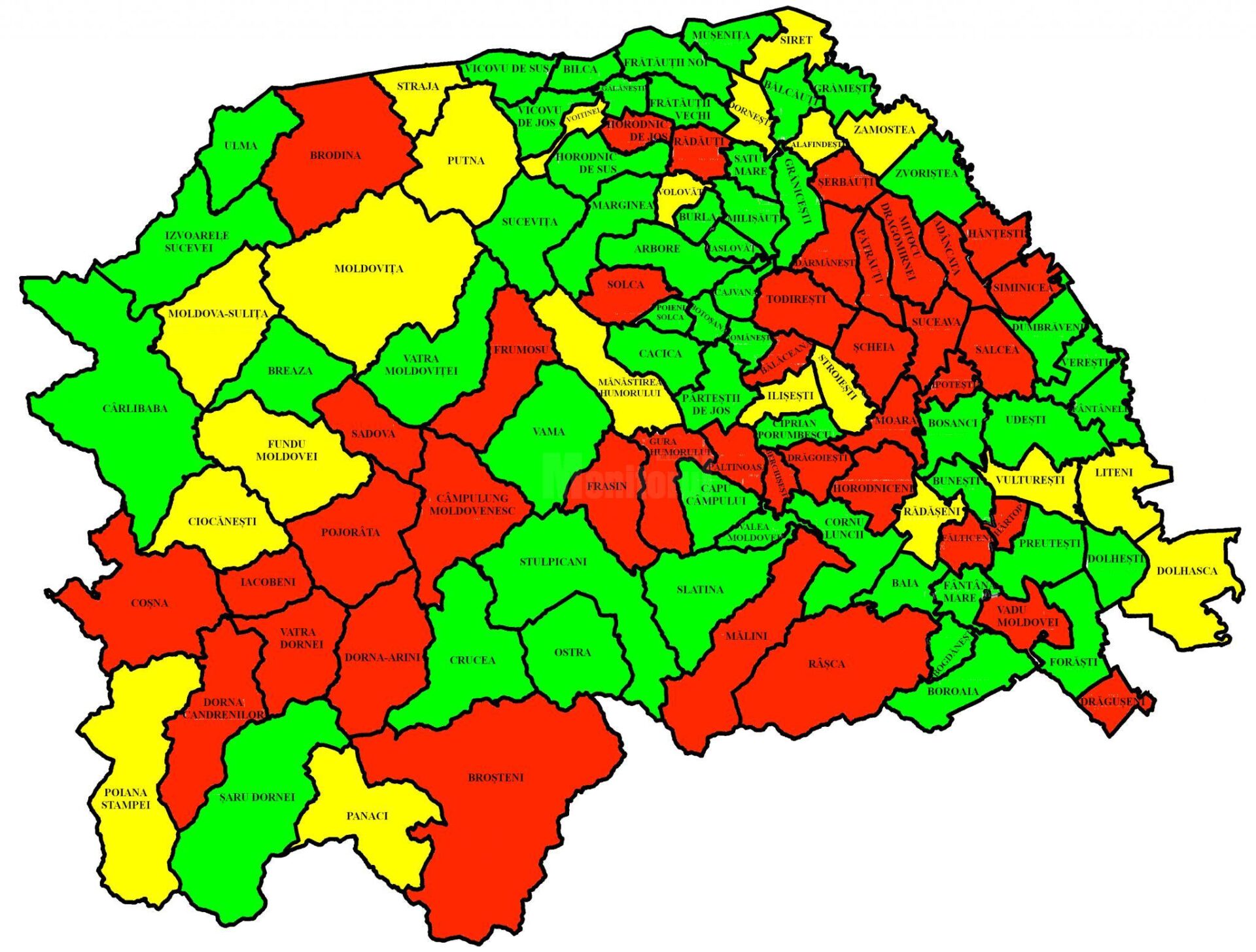 La Rădăuți sunt internați 115 pacienți cu Covid, din care 21 cu forme grave și 12 cu forme critice; Câmpulung Moldovenesc – 40 de pacienți, din care 5 cu forme grave; Gura Humorului – 38 de pacienți; Siret – 13 pacienți; Vatra Dornei – 46 de pacienți, din care 13 cu forme grave și 3 cu forme critice; Fălticeni – 61 de pacienți, din care 4 cu forme critice. În total, în spitalele din județ se află 473 de pacienți cu Covid. Sunt disponibile 429 de locuri Covid, dar nici un loc la ATI Covid.