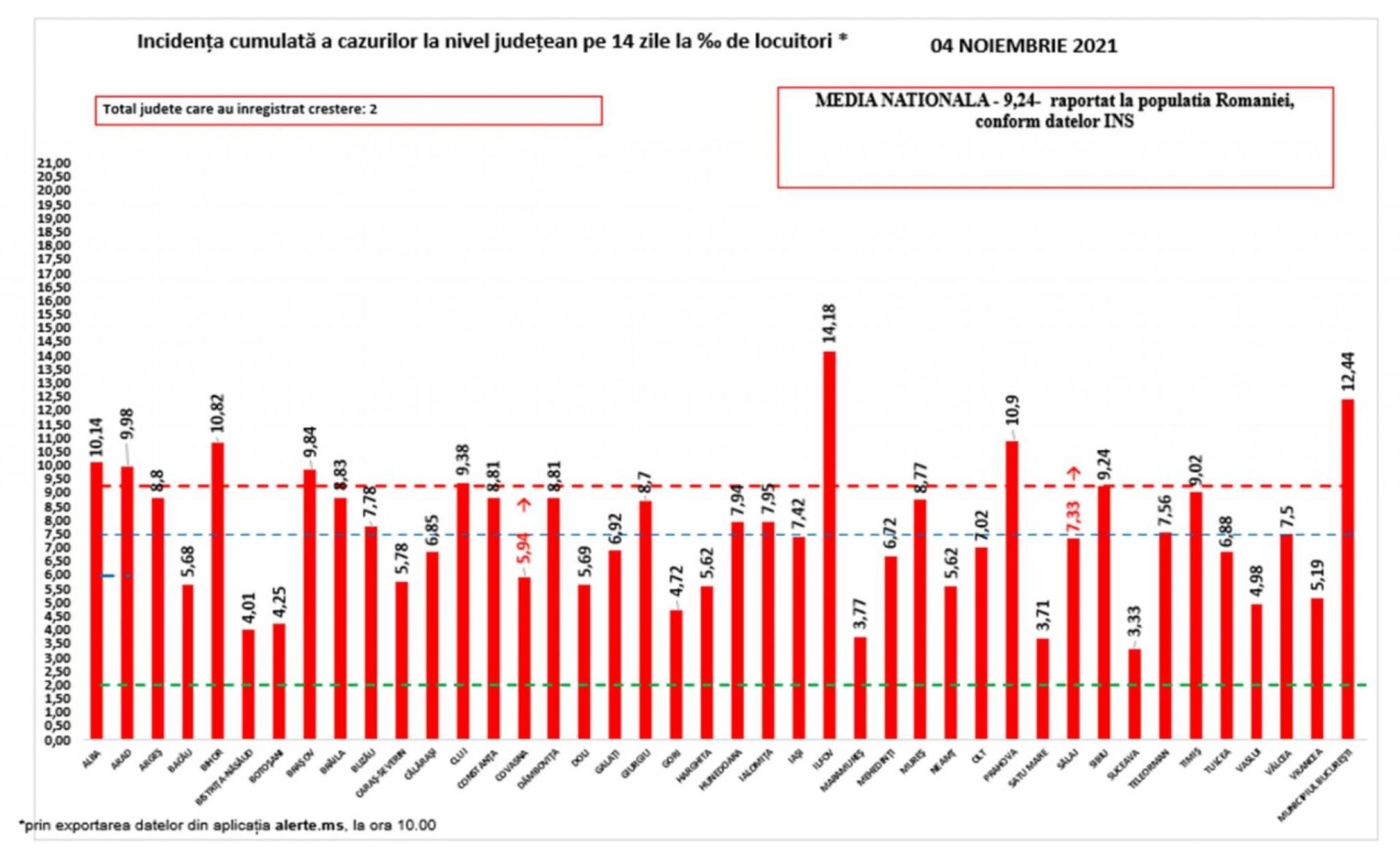 În spitalele din județul Suceava, conform buletinului de presă remis zilnic de Prefectură, în intervalul 3-4 noiembrie au fost internate 37 de persoane cu Covid și au fost externate 56 de persoane. În aceeași perioadă de referință au decedat 14 persoane ca urmare a infecției cu Covid-19.