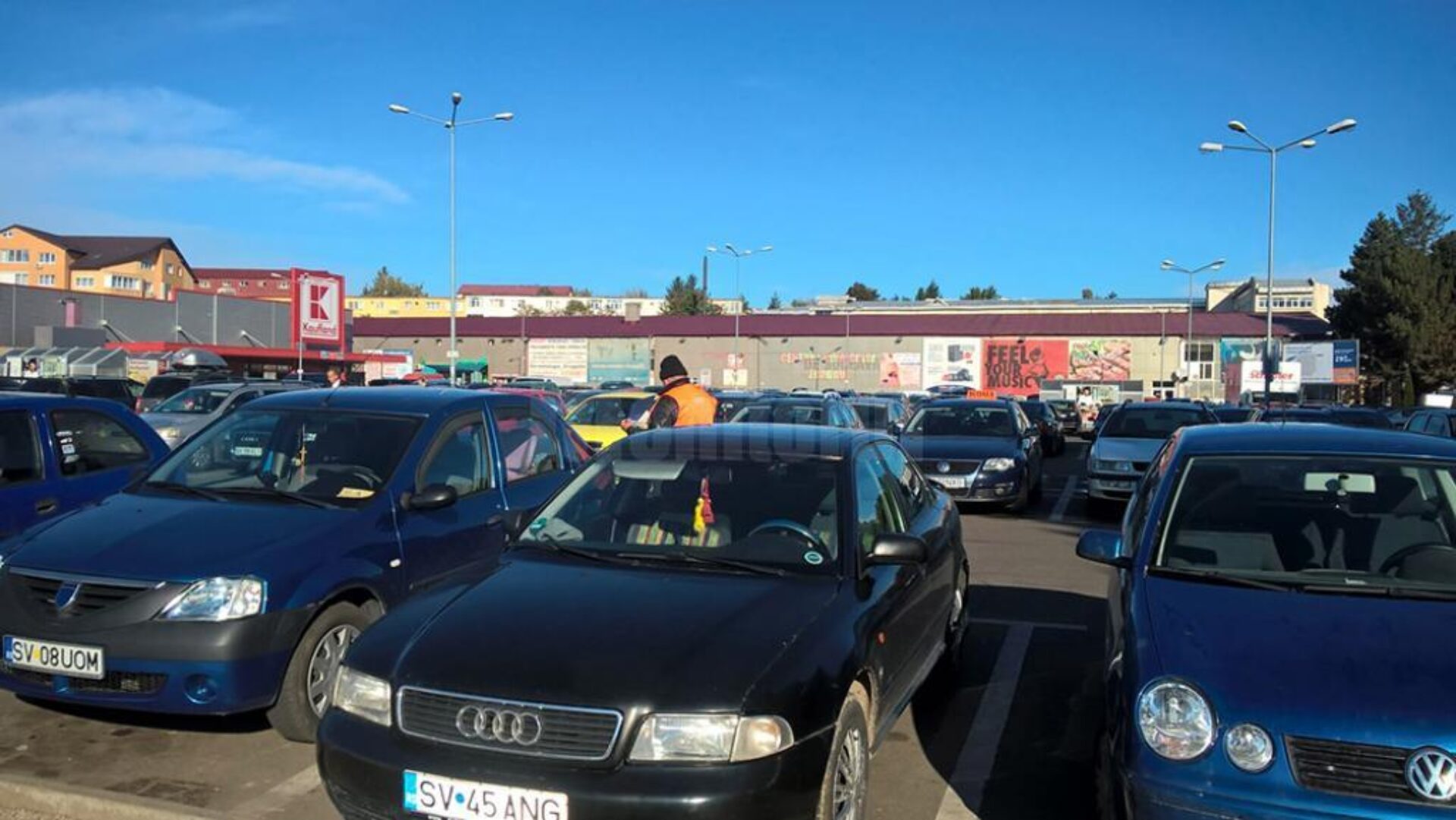 „În interesul clienților noștri, firma noastră nu poate asigura locuri de parcare pentru un interval de timp mai lung decât cel în care clienții noștri își efectuează cumpărăturile. Pe viitor, vă rugăm să parcați autoturismul pe locurile de parcare ale firmei noastre numai pe perioada în care vă efectuați cumpărăturile în magazinul Kaufland”, este o parte din avertismentul pus pe una dintre mașini, joi, 6 octombrie.
