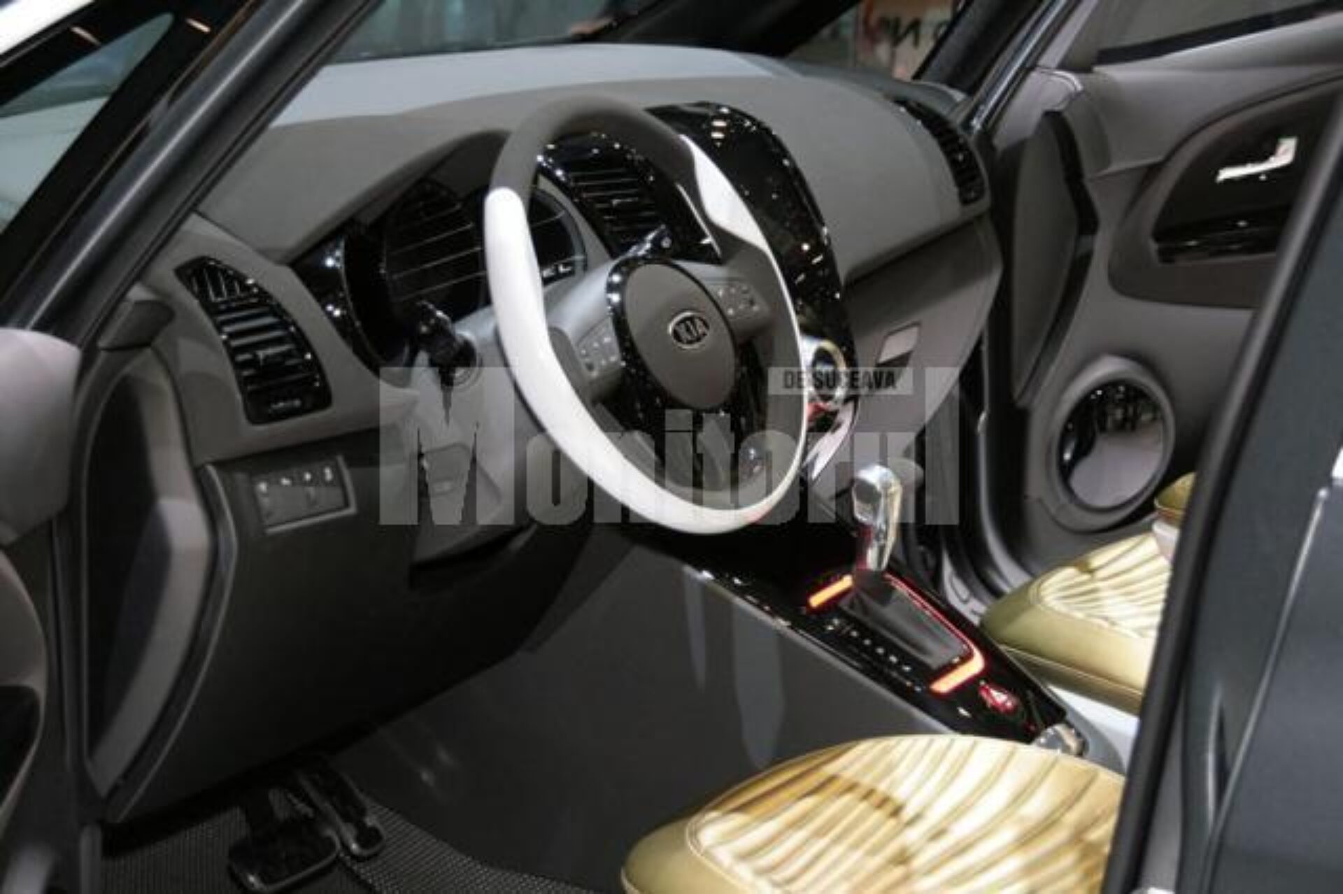 Modelul cu o lungime de 4,04 metri dispune de un acoperiș din sticlă, blocuri optice și o grilă motor în ton cu linia viitoarelor creații Kia.
