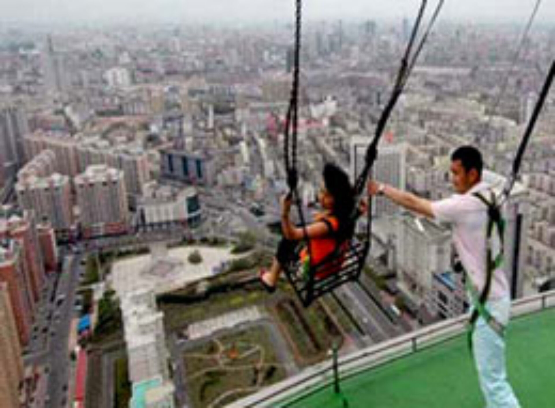 Din dorința de a se bucura de un leagăn „la înălțime”, chinezii au profitat de existența unui turn înalt de 335 de metri. Leagănul „sus pus” a fost poziționat pe una din platformele clădirii din orașul Harbin, vizitatorii putând astfel admira priveliștea de la înălțimea de 213 metri.