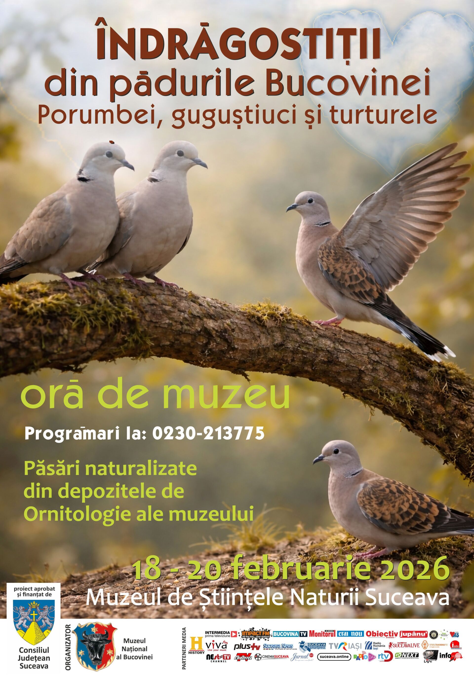 „Vă așteptăm la Muzeul de Științele Naturii din Suceava să celebrăm Dragobetele prin știință, natură și povești fascinante despre <îndrăgostiții> lumii înaripate”, au transmis organizatorii. Proiectul este finanțat de Consiliul Județean Suceava.