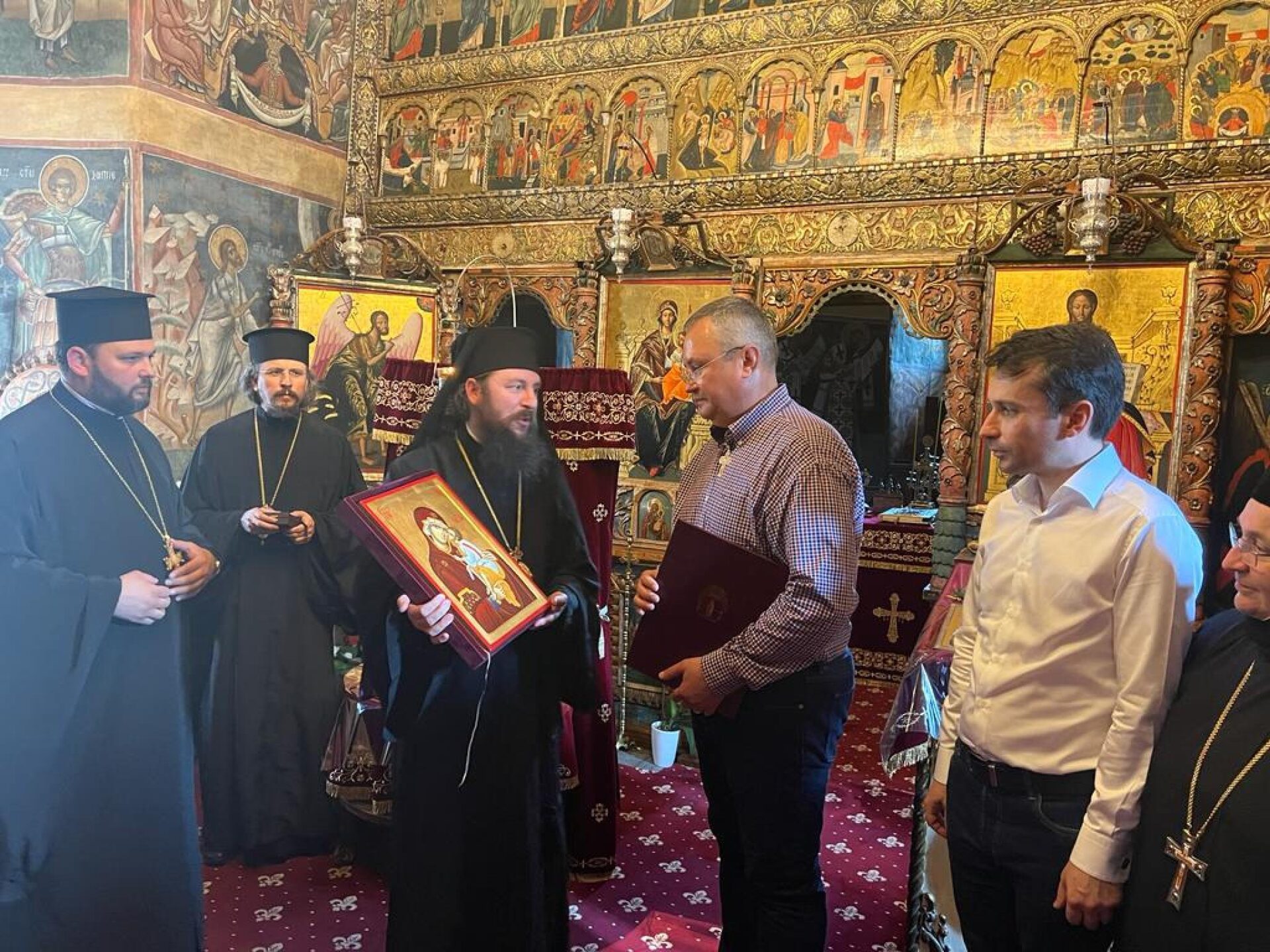 Tot vineri, Nicolae Ciucă și Gheorghe Flutur au mers și la Mănăstirea Voroneț, unde au fost întimpinați de episcopul vicar al Arhiepiscopiei Sucevei și Rădăuților, PS Damaschin Dorneanul. Acesta i-a oferit președintelui Senatului, din partea ÎPS Calinic, în fața altarului mănăstirii, cea mai înaltă distincție pentru mireni, Ordinul Crucea Bucovinei. PS Damaschin Dorneanul a spus că distincția i-a fost acordată pentru sprijinul consistent oferit bisericii ortodoxe.
