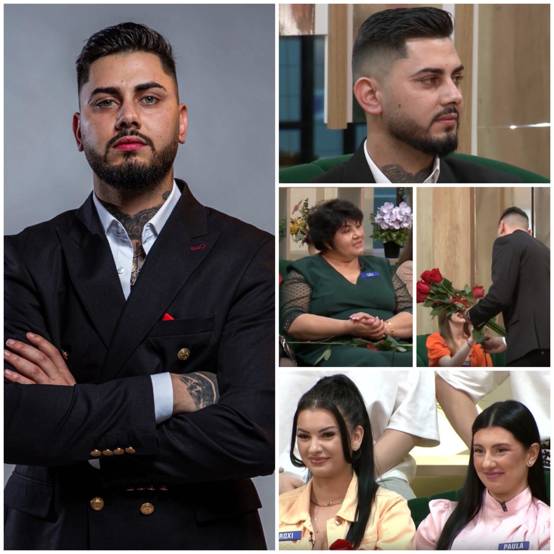 Tânărul, care a trecut de la costumul de urător la cel de ”ginerică”, a pășit în platoul emisiuni cu un buchet imens de trandafiri roșii, oferind câte o floare tuturor fetelor și femeilor din casă, inclusiv mamei sale. De meserie artist tatuator, din zodia Vărsător, el a venit în emisiune pentru a-și căuta aleasa inimii.
