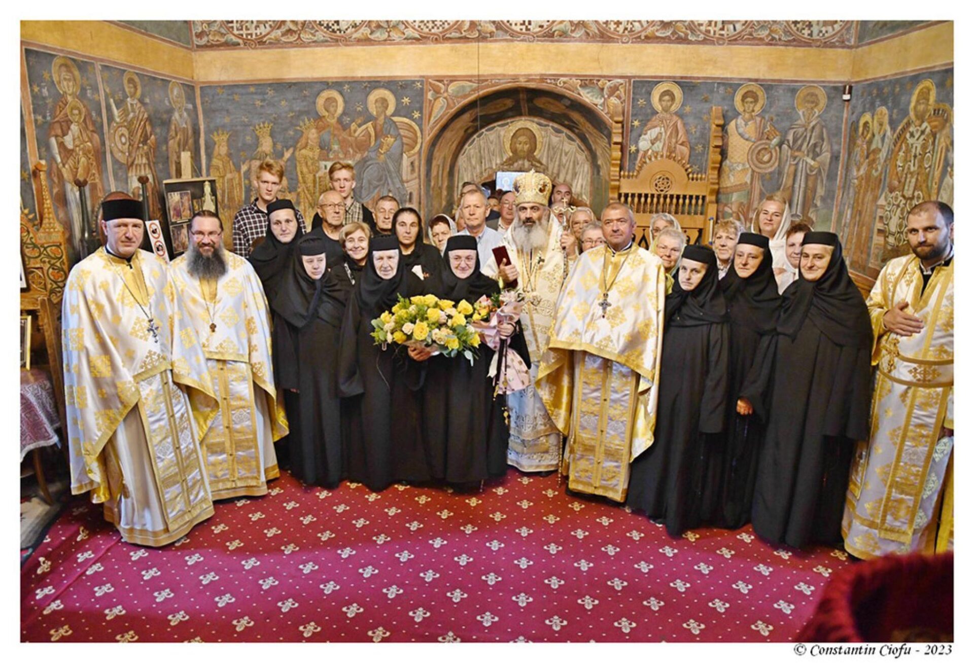 Preasfinția Sa a îngenuncheat apoi la mormântul Sfântului Cuvios Daniil Sihastrul și s-a închinat la icoanele din străvechiul locaș de închinăciune ctitorit de Sfântul Voievod Ștefan cel Mare. Slujba a fost oficiată cu binecuvântarea Înaltpreasfințitului Părinte Calinic, Arhiepiscopul Sucevei și Rădăuților, cu prilejul împlinirii a 45 de ani de la tunderea în monahism a stavroforei Irina Pântescu, întâia stareță a Voronețului. De asemenea, tot în această zi, s-au aniversat cinci ani de când vrednicul de pomenire Arhiepiscop Pimen a hirotesit-o stareță a așezământului monastic pe stavrofora Gabriela Platon.