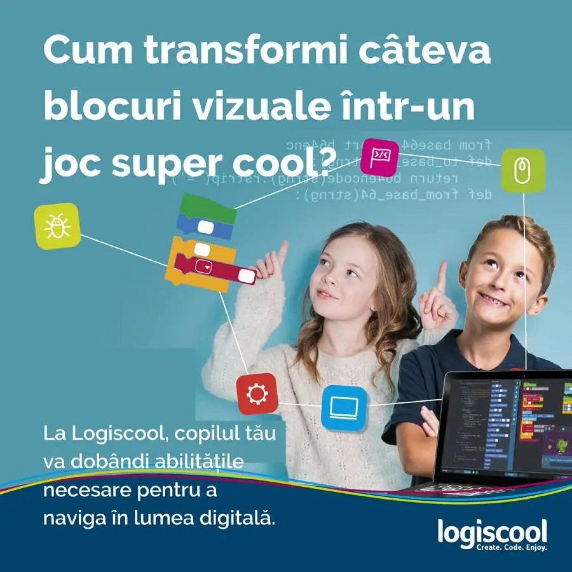 Logiscool România ,lider în programe edu-tech pentru copii, începe o nouă campanie de înscrieri la cursurile de programare, atât cursuri la sediu, cât și online. Interactive și utile, cursurile Logiscool le oferă elevilor posibilitatea de a dezvolta noi abilități necesare unui viitor al digitalizării, indiferent de meseria pe care o vor alege. Ghidați de instructori tineri și pasionațișiavând acces la propria platformă de învățare a Logiscool, elevii învață cum să dezvolte singuri o aplicație sau să construiască un joc, dar și cum să editeze un clip video.