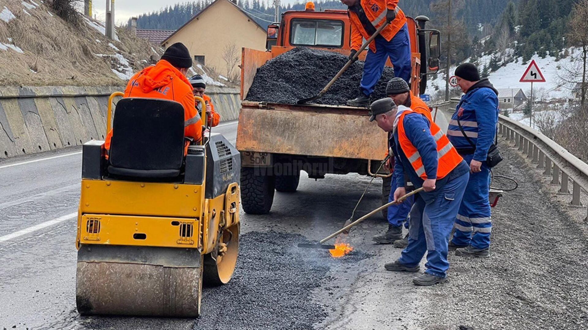 După data de 15 martie, când vremea va permite, se va trece la lucrări mai ample, de turnare covor asfaltic, practic soluția mult așteptată și necesară pentru revenirea la un trafic normal.