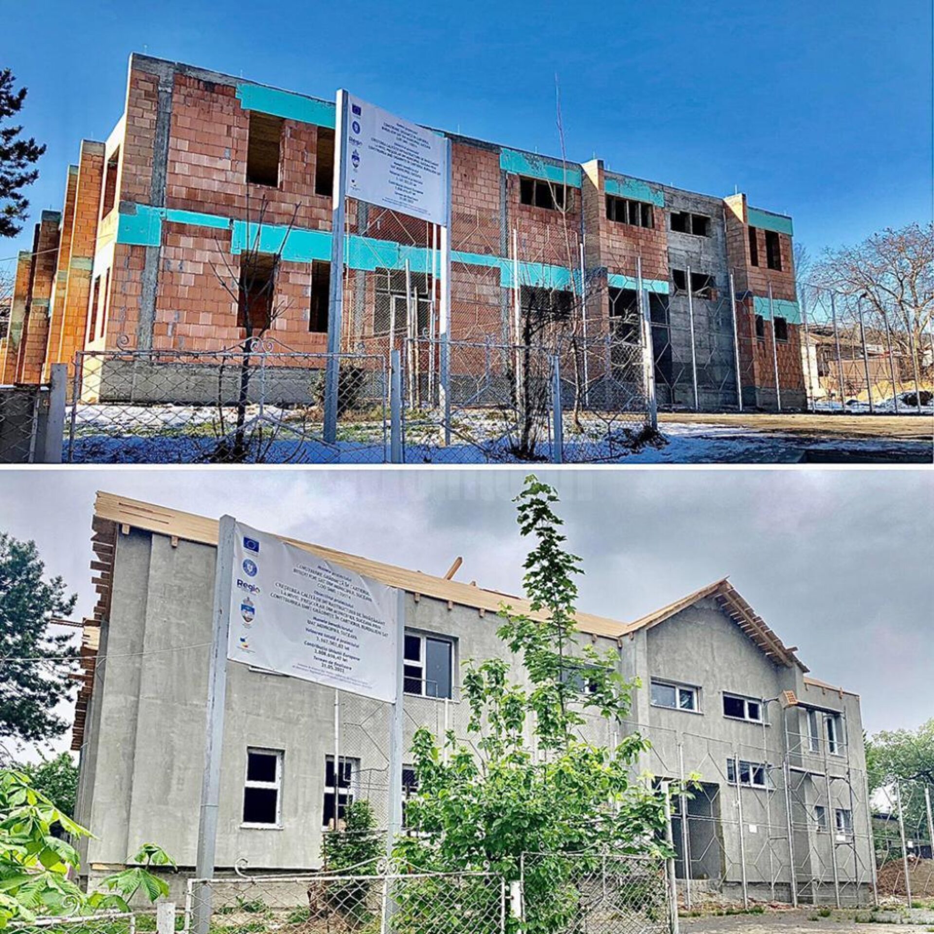 În prezent, lucrările sunt realizate în proporție de 50%, fiind finalizate structura de rezistență, structura de acoperiș, tencuielile interioare și instalațiile.