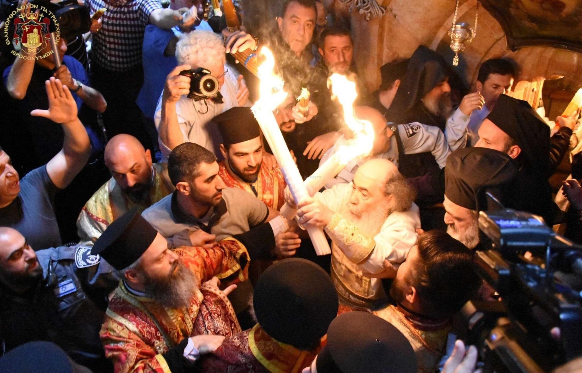Lumina Sfântă s-a pogorât astăzi la ora 14:54 (ora României) la Biserica Sfântului Mormânt al Mântuitorului Iisus Hristos din Ierusalim. Ceremonia de primire a Sfintei Lumini a fost oficiată de Patriarhul Ierusalimului, Preafericitul Părinte Teofil al III-lea. Arhimandritul Teofil Anăstăsoaie, Superiorul Așezămintelor Românești de la Ierusalim, va conduce delegația care aduce Sfânta Lumină în România.