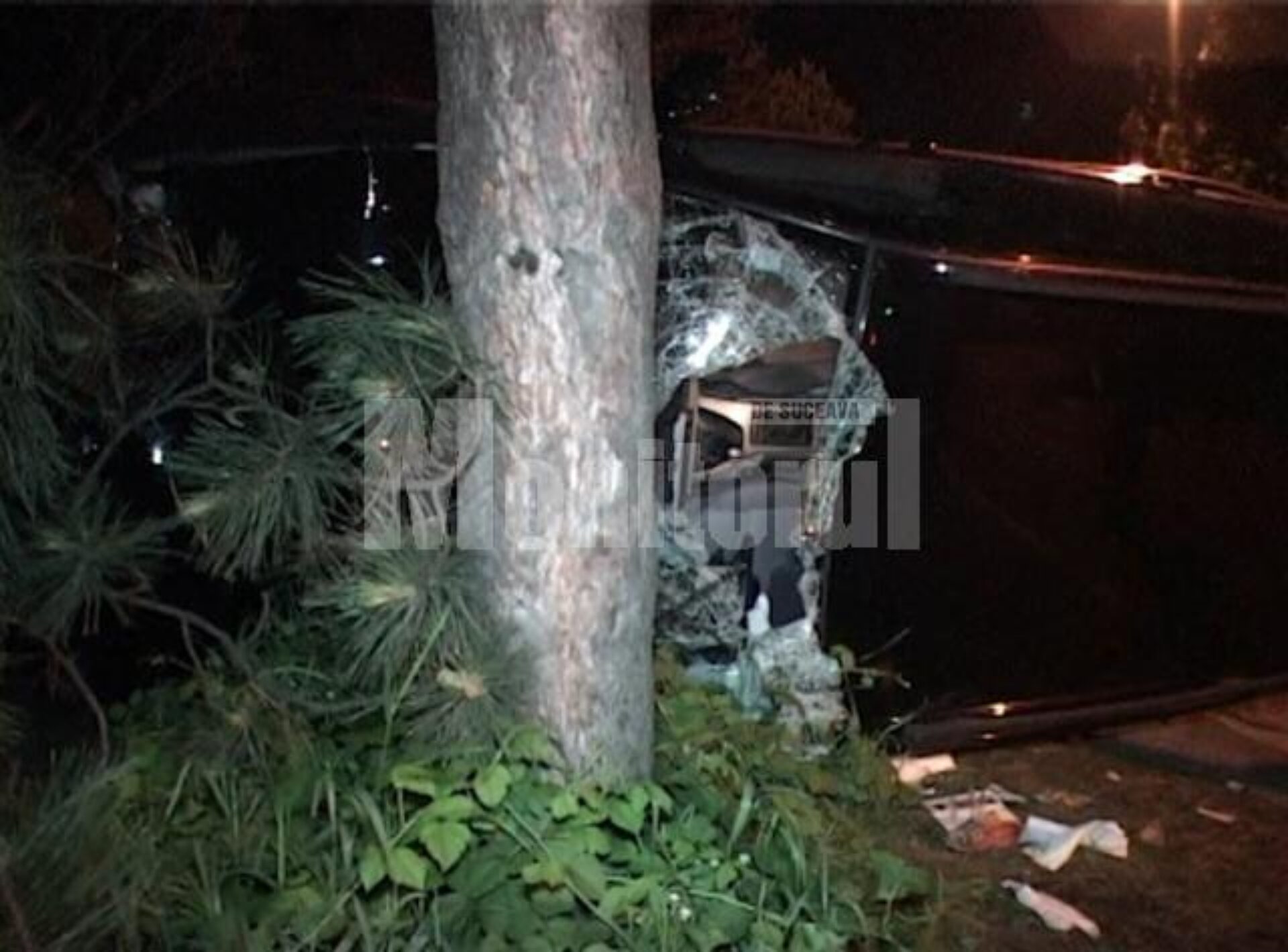 În timp ce cobora serpentinele, șoferul a pierdut controlul asupra volanului, lovindu-se violent de un copac de la marginea drumului și apoi răsturnându-se pe o parte.