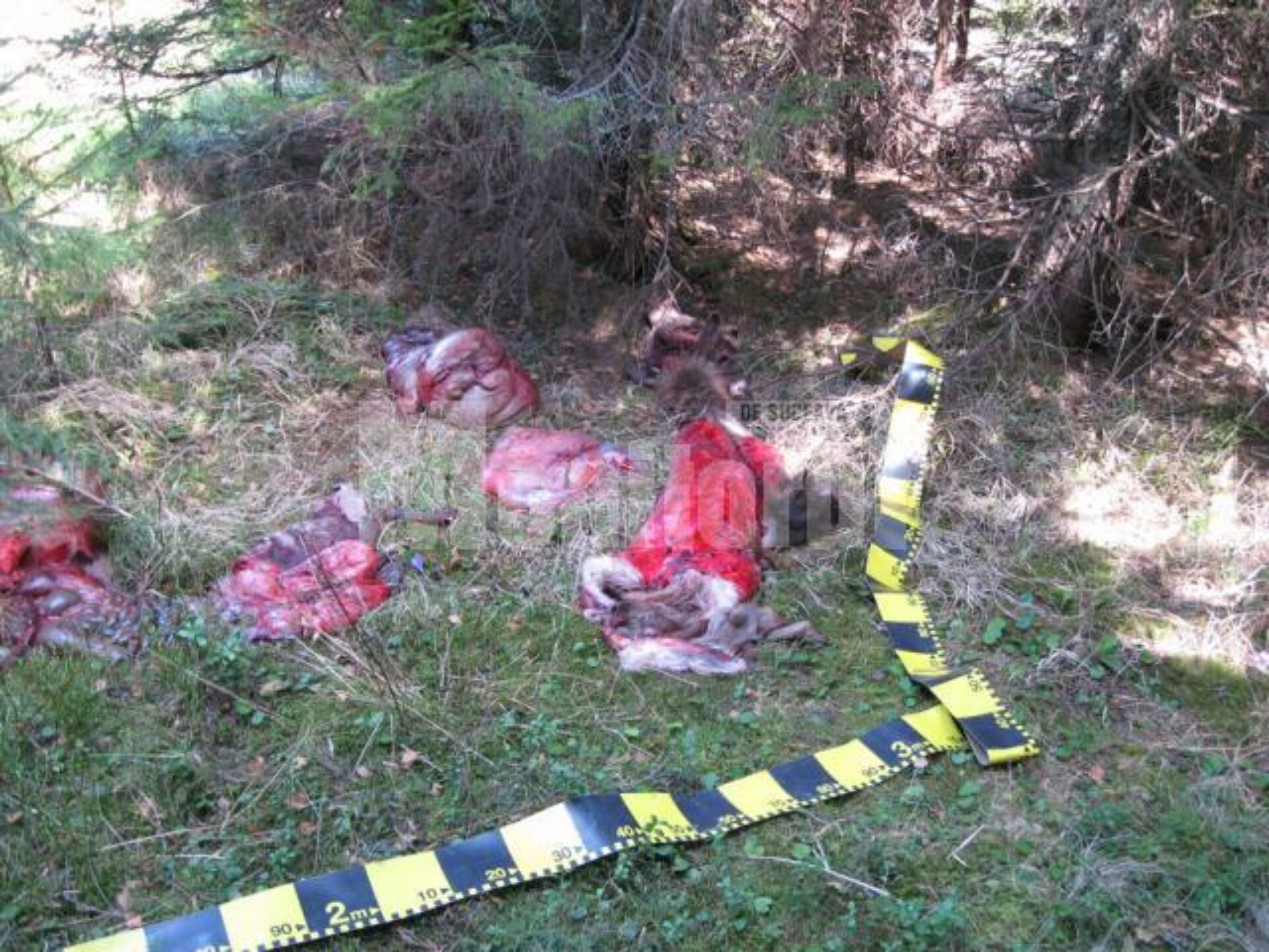 Sâmbăta trecută, un angajat al Ocolului Silvic Cîrlibaba a auzit mai multe împușcături și a sunat la 112, sesizând poliția că în zonă se află braconieri. Dându-și seama că poliția este pe urmele lor, cei trei indivizi s-au urcat într-un autoturism de teren și au dispărut în grabă de la fața locului, abandonându-și cealaltă mașină cu care erau veniți, o dubă Fiat Ducato. Polițiștii și silvicultorii aveau să descopere un adevărat masacru în zona unde braconierii se apucaseră de tranșat animalele împușcate.