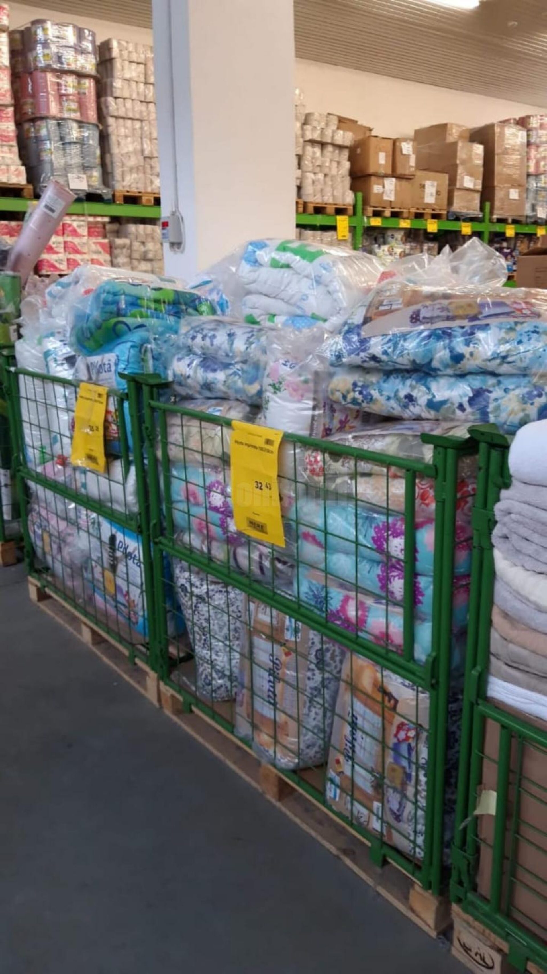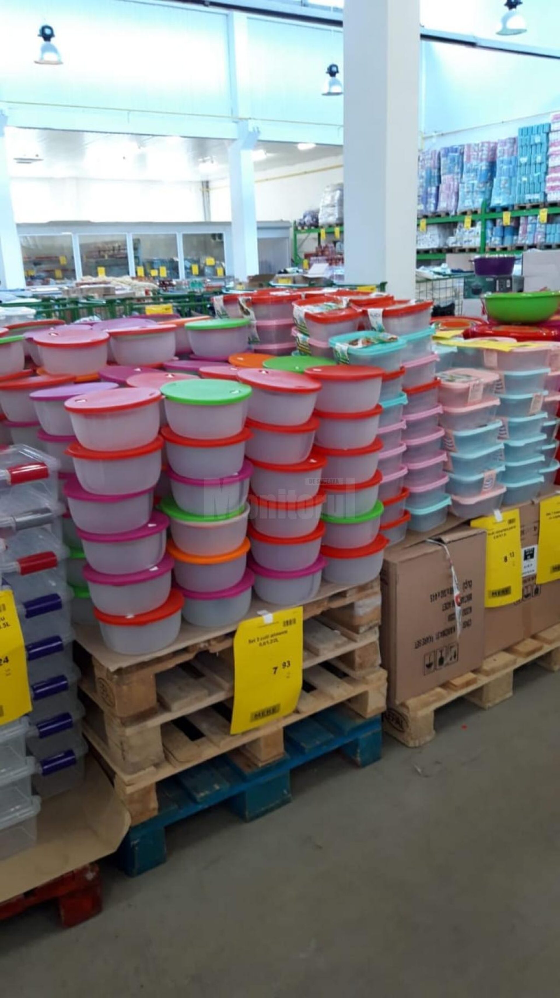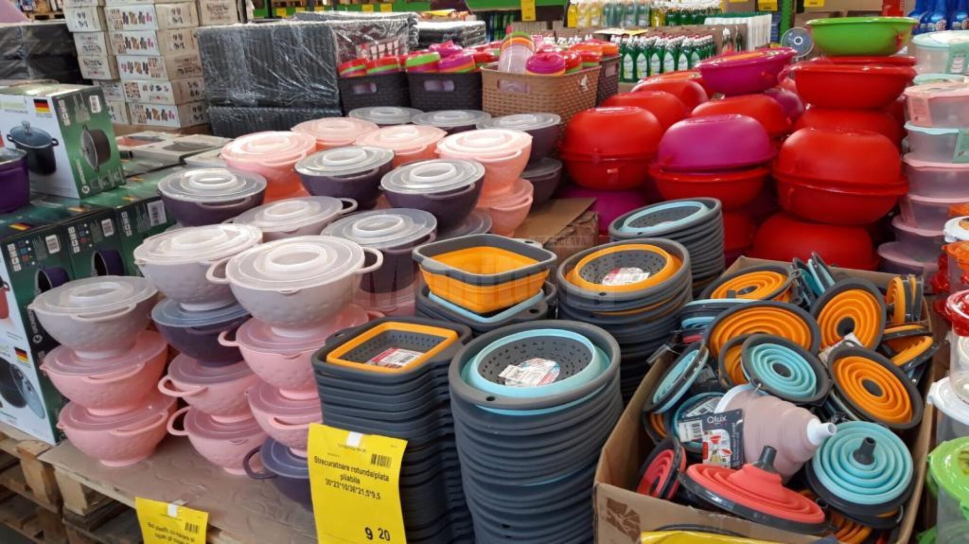 De exemplu, în oferta magazinului se găsesc seturi de 7 caserole de plastic, cu capac, la doar 18,96 de lei, tigăi cu diametrul de 26 cm, cu capac, la doar 33,28 de lei, gorile din pluș, cu mesajul „Te iubesc”, la 16,29 lei, huse pentru scaune auto, din material textil, elastic, la 98,29 de lei, perne matlasate Eco, la numai 13,35 lei, dar și coșuri de rufe, din plastic, cu capacitate de 45 de litri, la 18,68 lei.