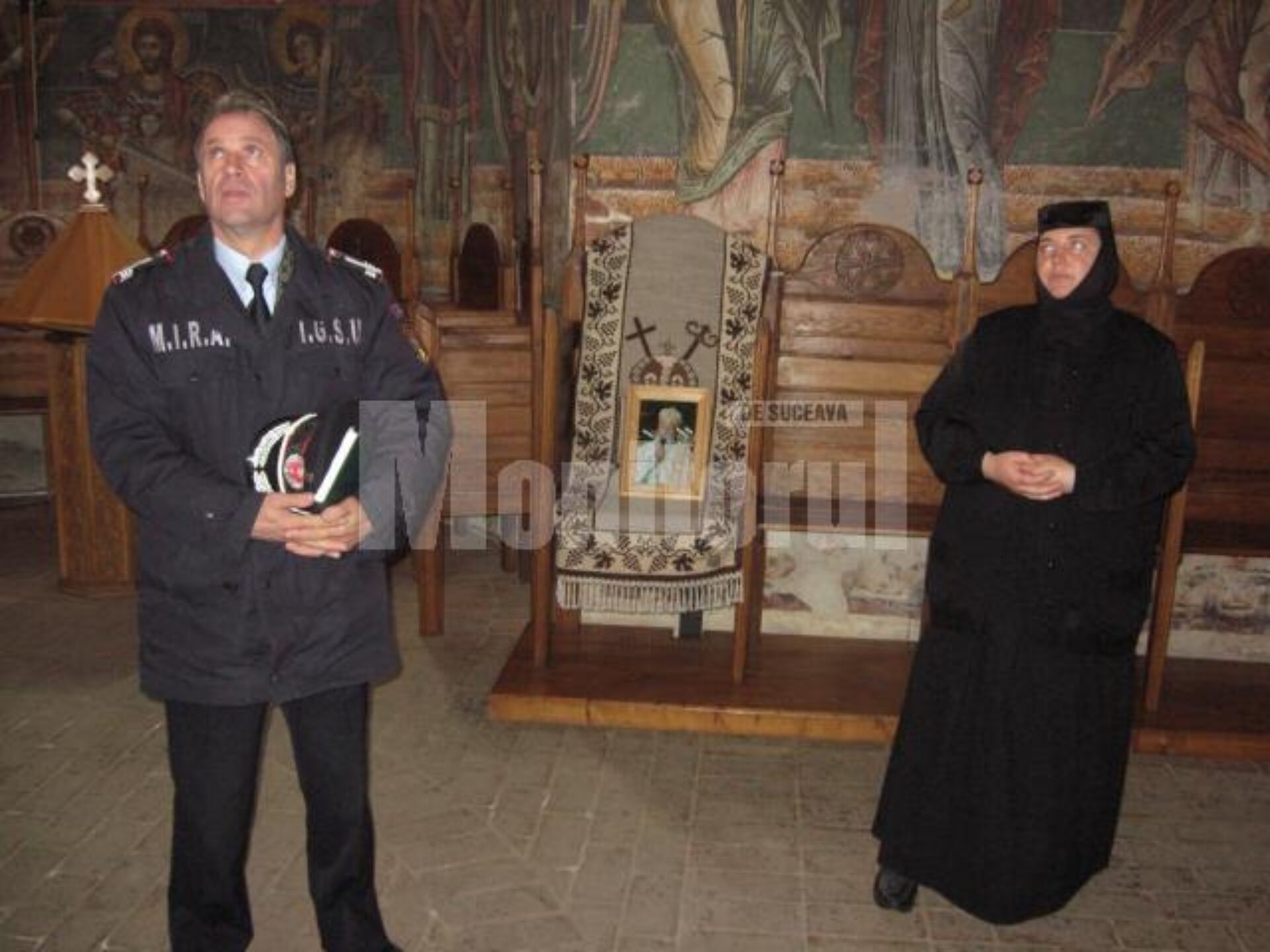 Ieri, echipa de control a ajuns la Mănăstirea Probota, ctitorită în 1530 de către domnitorul Petru Rareș. Aici, maica stareță Stavrofora Marina Țurcanu era oarecum obișnuită cu vizitele reprezentanților pompierilor și cunoștea bine regulile minime pe care trebuie să le respecte pentru a preveni incendiile.
