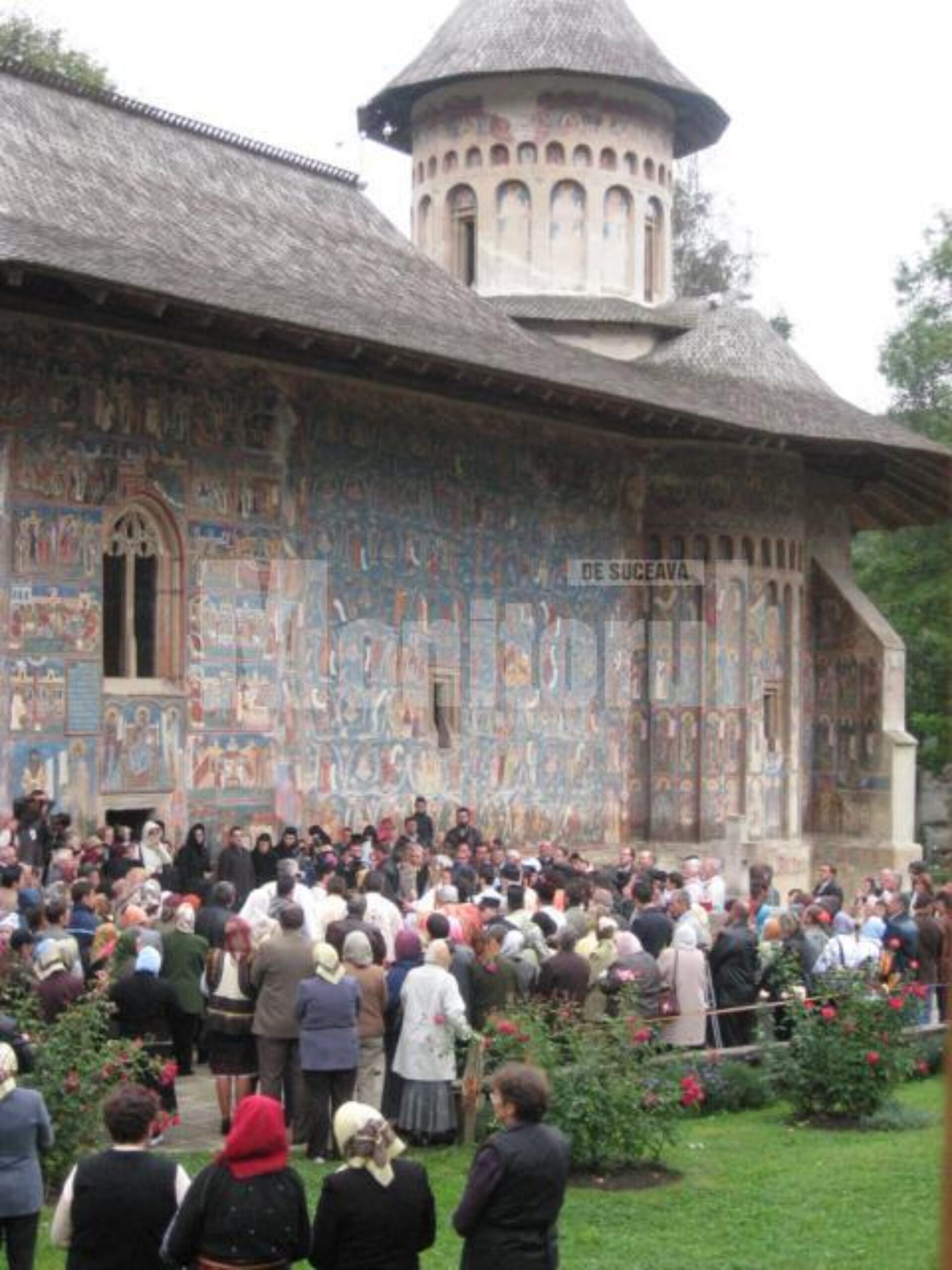 „Pictura interioară a fost făcută în 1494. Veșmântul de pictură exterioară i-a fost adăugat în 1547, când a fost adăugat și pridvorul de eruditul mitropolit Grigorie Roșca. Planurile iconografice au fost zămislite în mintea acestui mitropolit al Moldovei, care se odihnește în pridvorul Mănăstirii Voroneț. Este cunoscut în lume pentru albastrul de Voroneț, culoare intrată în galeria culorilor universale, un albastru care după 450 de ani este tot atât de frumos, renumită fiind pictura judecății de apoi”.