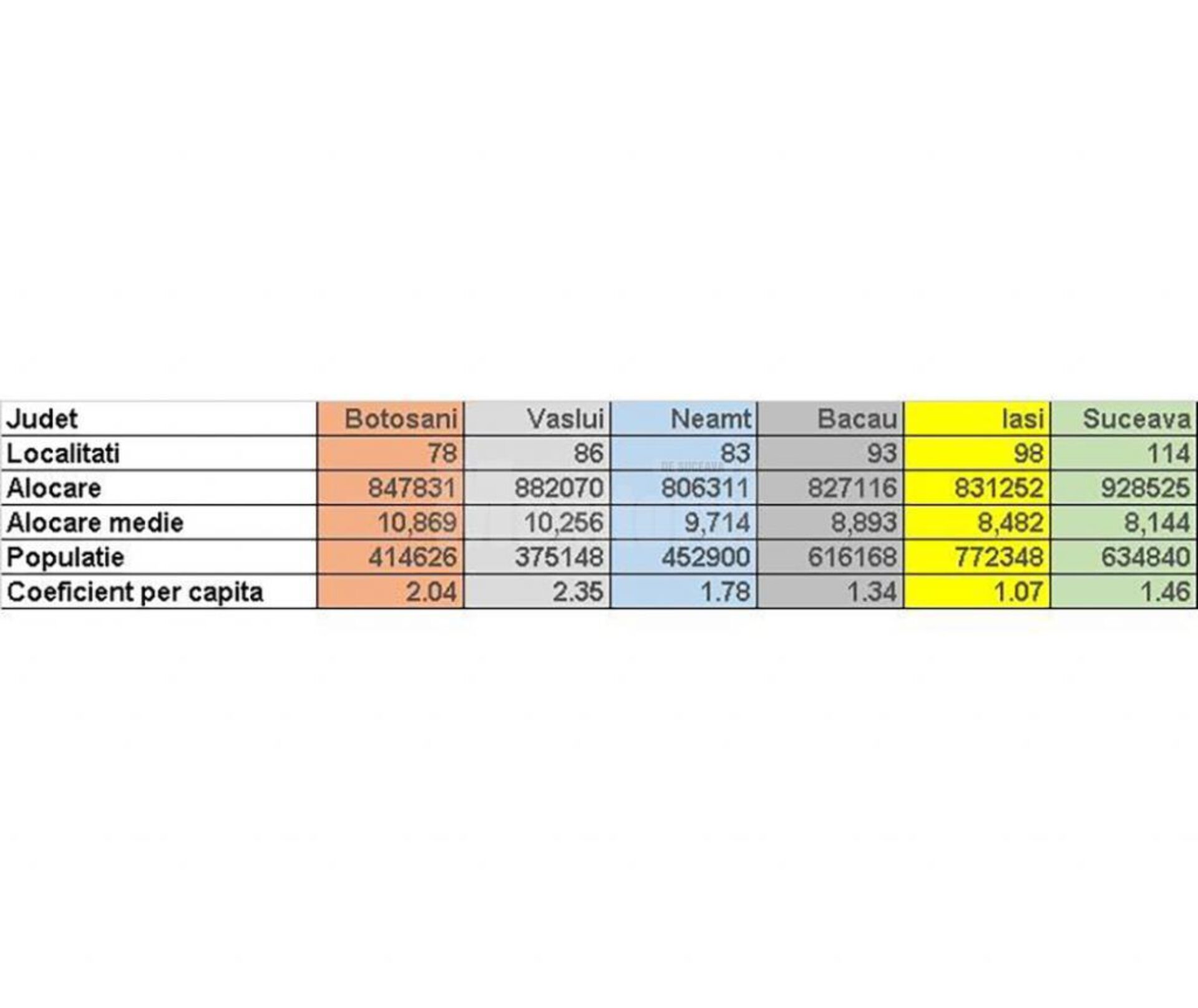 Anunțul că ”cea mai mare sumă, la nivel național, respectiv 928,525 de milioane de lei a fost alocată județului Suceava pentru finanțarea proiectelor prin Programul Național de Dezvoltare Locală” (PNDL), făcut, miercuri, de președintele PSD Suceava, senatorul Ioan Stan, este contrazis de colegul său de partid și de Parlament, deputatul Ioan Cătălin Nechifor. Într-o postare pe pagina sa de Facebook, deputatul Nechifor face o analiză a alocării fondurilor și scrie ironic că ”pentru a lua coroniță, e necesar să închei niște medii și să faci și media aritmetică la final”. ”Adică nu e suficient să ai 10 la purtare, la matematică sau la geografie pentru a lua premiul I”, subliniază deputatul social-democrat. Acesta explică faptul că, deși la prima vedere suma de 928,525 milioane lei e cea mai mare din țară, la o analiză care ia în calcul numărul de localități, populația județului Suceava, suprafață și gradul ridicat de sărăcie, alocarea pentru județul Suceava ar fi trebuit să fie mai mare. ”Adâncind analiza, lucrurile nu mai stau chiar atât de roz pentru județul nostru pentru că, din păcate, nici măcar la nivelul Regiunii de Dezvoltare Nord-Est nu suntem pe primul loc. Ba chiar suntem pe ultimul loc la media alocărilor raportată la numărul de localități, care este de 8,144 de milioane de lei (928,525 de milioane lei/ 114 localități) și respectiv locul 4, antepenultimul, la alocarea per capita, al cărei coeficient care este de 1,46 (928,525 de milioane de lei/ 634.840 de locuitori), înainte de Bacău și Iași.