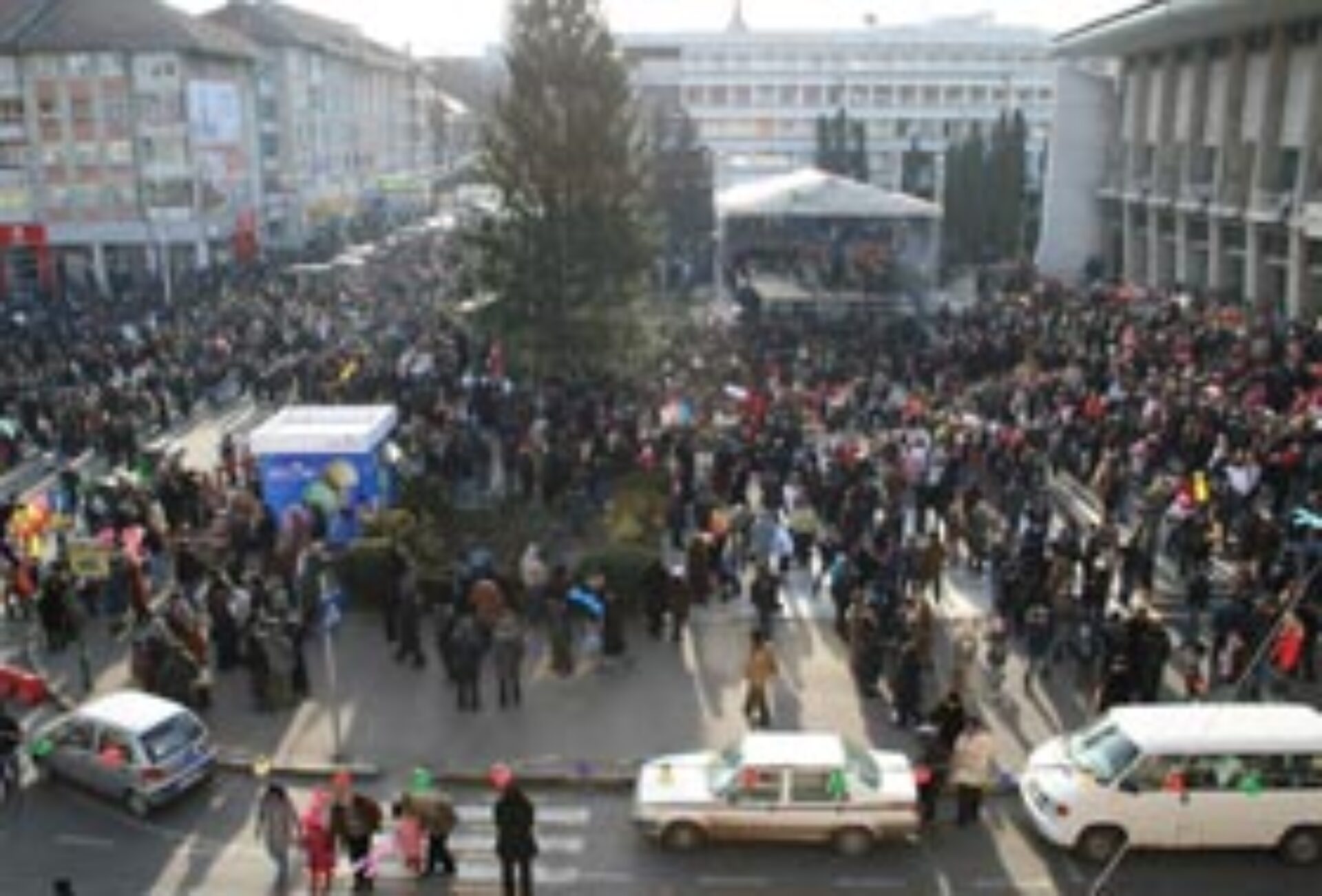 După datina străbună, grupuri de mascați, colindători, urători din 20 de localități sucevene s-au adunat ieri în centrul Sucevei, pentru a participa la Festivalul de datini și obiceiuri populare de Anul Nou – „Plugul datinii străbune”. Începând cu ora 10:00, ansamblurile artistice, „partiile”, fanfarele, „malăncile”, grupurile de căiuți, capre, urși, cu toții s-au aliniat pe traseul dintre Biblioteca I. G. Sbiera și Prefectura Suceava, locul în care s-au oprit, în jurul orei 11:00, pentru a saluta oficialitățile locale, după care și-au continuat drumul până în fața Casei de Cultură. Pe o scenă special amenajată, fiecare formație a susținut un program de colinde, urături, dansul mascaților, specific localității pe care au reprezentat-o.