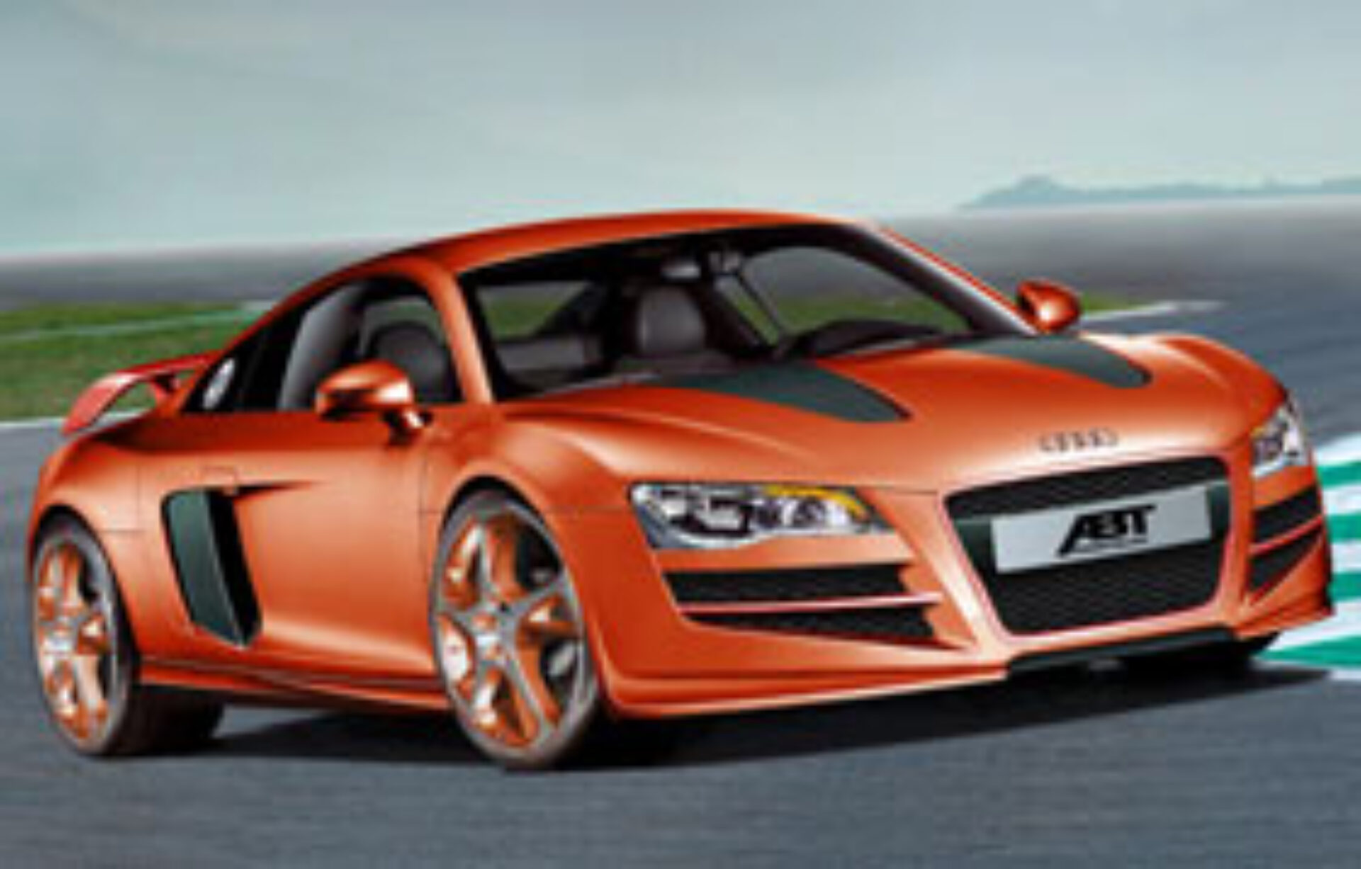 Privind această schiță realizăm că de fapt nemulțumitului i se dă mai mult și în nici un caz nu i se ia darul așa cum se spune în popor. Tocmai de aceea s-a născut ramura industriei de tuning pentru a oferi întotdeauna ceva peste oferta obișnuită. Abt, unul din cei mai apreciați tuneri din Europa, a devenit un fel de divizie sport de casă pentru Audi și Volkswagen, modele pe care le modifică tehnic și estetic într-un mod aparte fără însă a exagera cu detaliile de ordin aerodinamic. Noua creație este chiar bolidul R8 pe care l-au dotat cu un kit de exterior foarte modern și compresor volumetric pentru motor. Caroseria fabricată parțial din fibră de carbon este echipată cu spoiler față și spate, eleron și un nou set de jante de 20 de inch. Cu siguranță Audi R8 Abt nu va trece neobservat nu numai datorită aspectului foarte agresiv dar și culorii orange, o nuanță special preparată pentru un model la fel de special. Priza de aer centrală a motorului foarte mare ca dimensiune vorbește de la sine despre cantitatea de aer necesară unei ventilații corecte. Sub capotă se află același motor V8 de 4200 cmc dar care a primit un supliment de putere ca urmare a montării unui compresor volumetric. Puterea propulsorului a crescut de la 420 la 530 CP iar viteza maximă de la 301 la 317 km/h. Demarajul a fost îmbunătățit cu 0.7 secunde. Audi R8 Abt are nevoie de 3.9 secunde pentru a atinge 100 kilometri la oră, o cifră care pune în pericol performanțele unor modele de top precum Ferrari F430, Lamborghini Gallardo și Porsche 911 Turbo. Pentru îmbunătățirea manevrabilității, confortului dar și a ținutei de drum Abt a echipat modelul tunat cu suspensii ajustabile pe înălțime, ca tărie și cursă de lucru. Din toamnă se va putea comanda versiunea R8 prelucrată de Abt. Așteptăm prețurile!