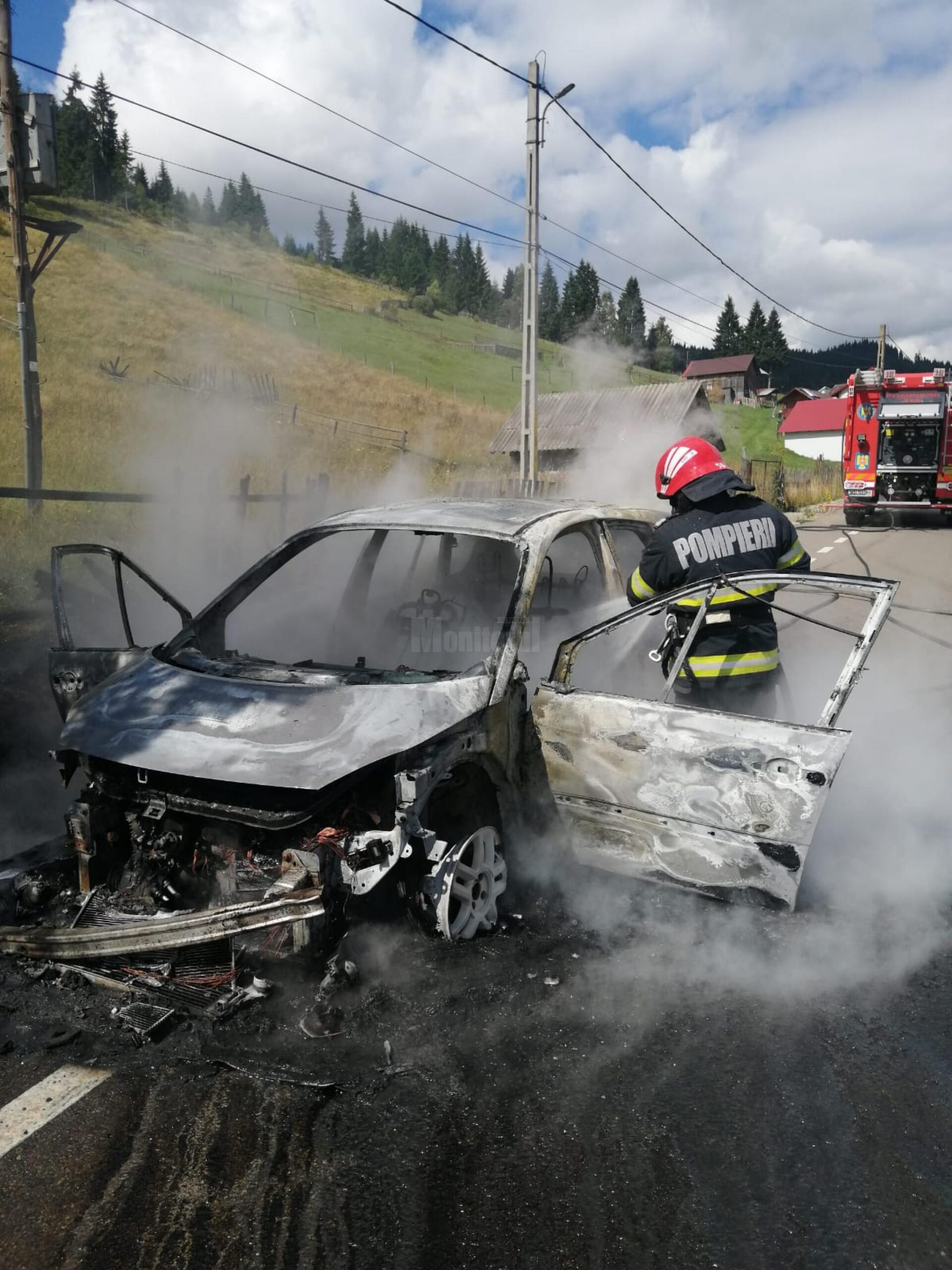Un autoturism a ars în totalitate în cursul zilei de luni după ce luat foc în trafic. Incidentul s-a petrecut după orele prânzului, pe DN 17, în zona satului Mestecăniș, la coborârea spre Iacobeni.