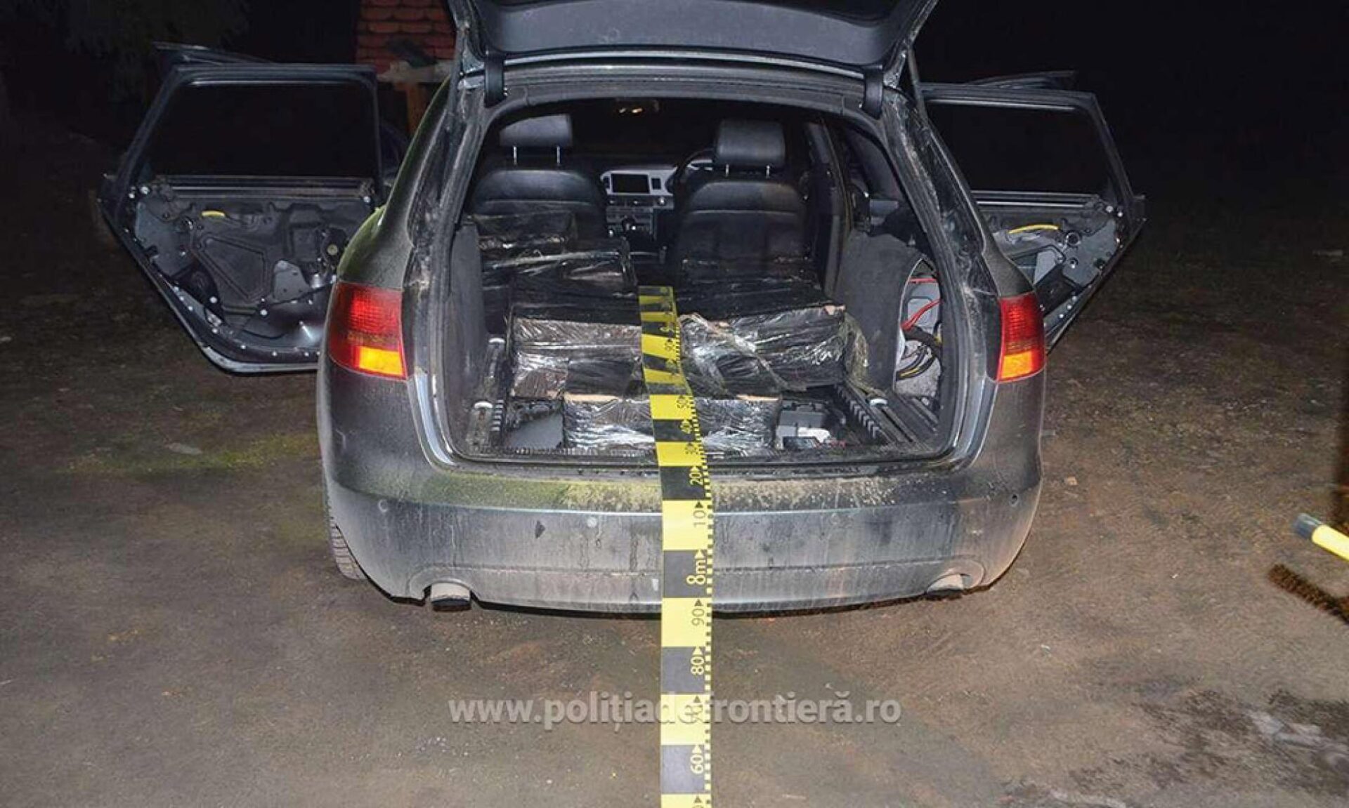 Acesta a reușit să dispară după ce a abandonat mașina într-o parcare de pe marginea drumului județean. Autoturismul a fost dus la sediul Sectorului Poliției de Frontieră Brodina, unde în urma inventarierii a rezultat cantitatea de 4.930 de pachete de țigări, de proveniență Duty-Free, în valoare de 57.681 lei. Autoturismul marca Audi, în valoare de 10.000 lei, care, de asemenea, avea numere de înmatriculare false, a fost indisponibilizat. Cercetările ulterioare au arătat că la volan se afla un bărbat de 33 de ani, căruia i s-a întocmit dosar penal pentru comiterea infracțiunilor de contrabandă, punerea în circulație sau conducerea pe drumurile publice a unui autovehicul cu număr fals de înmatriculare și complicitate la contrabandă.