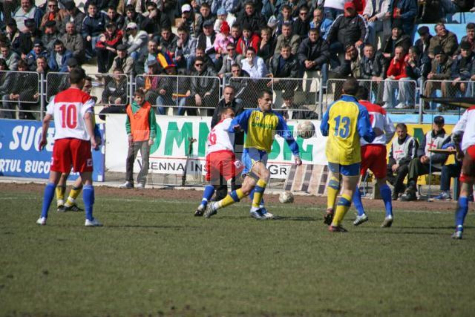Confruntarea cu Dunărea Giurgiu a atras în tribunele stadionului Areni un număr record de spectatori pentru acest retur. Cei 3.000 de spectatori aflați în tribune au avut bucuria să asiste la un start perfect de partidă pentru gruparea suceveană. Era abia minutul 8 când Celpan a executat perfect un corner de pe partea stângă, iar Streinu a înscris cu o lovitură plasată de cap, la colțul scurt. Golul primit i-a afectat vizibil pe fotbaliștii giurgiuveni, care nu au arătat mare lucru în prima jumătate de oră. A venit însă minutul 31 și la o fază care nu anunța nimic, fotbaliștii pregătiți de Marin Barbu au reușit să restabilească egalitatea prin juniorul Stan, care a profitat și de ieșirea total inoportună dintre buturi a lui Rohețki. După o primă repriză săracă în faze de poartă, partea a doua a jocului a început mult mai dinamic. Mai întâi oaspeții au ratat o bună ocazie de a trece în avantaj prin Radu, pentru ca imediat, sucevenii să riposteze prin Dumitru și Romaniuc. Apoi, într-un singur minut, 67, fotbaliștii lui Ovidiu Murariu au fost de două ori foarte aproape de gol, însă giurgiuvenii Ciocârlan și Gheorghe au reușit să respingă de fiecare dată de pe linia porții. Jocul a continuat pe contre, și, imediat, la poarta cealaltă, Tatarciuc a punctat cu o frumoasă lovitură de cap, însă spre disperarea lui „Magiun”, golul a fost anulat pentru o poziție de ofsaid.