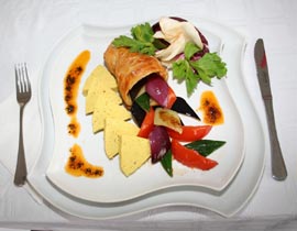 Pulpa de căprioară se porționează în trei tranșe, după care se trece prin făină și se trage la tigaie după care se adaugă dulceața de vișine. Din cașcaval, ou și făină se fac bulete de cașcaval. Ciupercile se pun pe grătar.