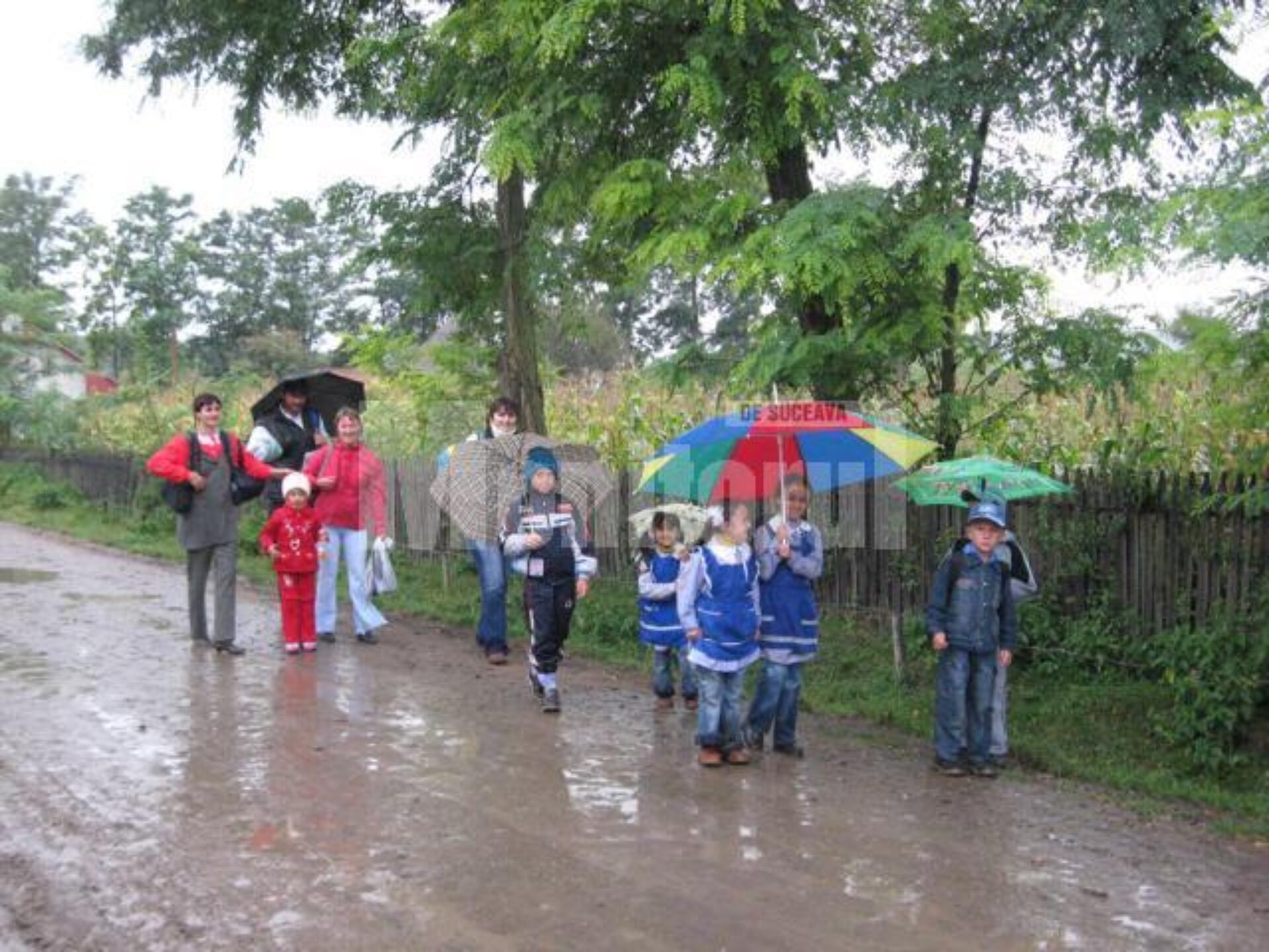 Și la Izvoarele Sucevei, unii elevi din clasele gimnaziale au de mers câte aproximativ zece kilometri pe jos, în fiecare zi, pentru a fi prezenți la orele de curs.
