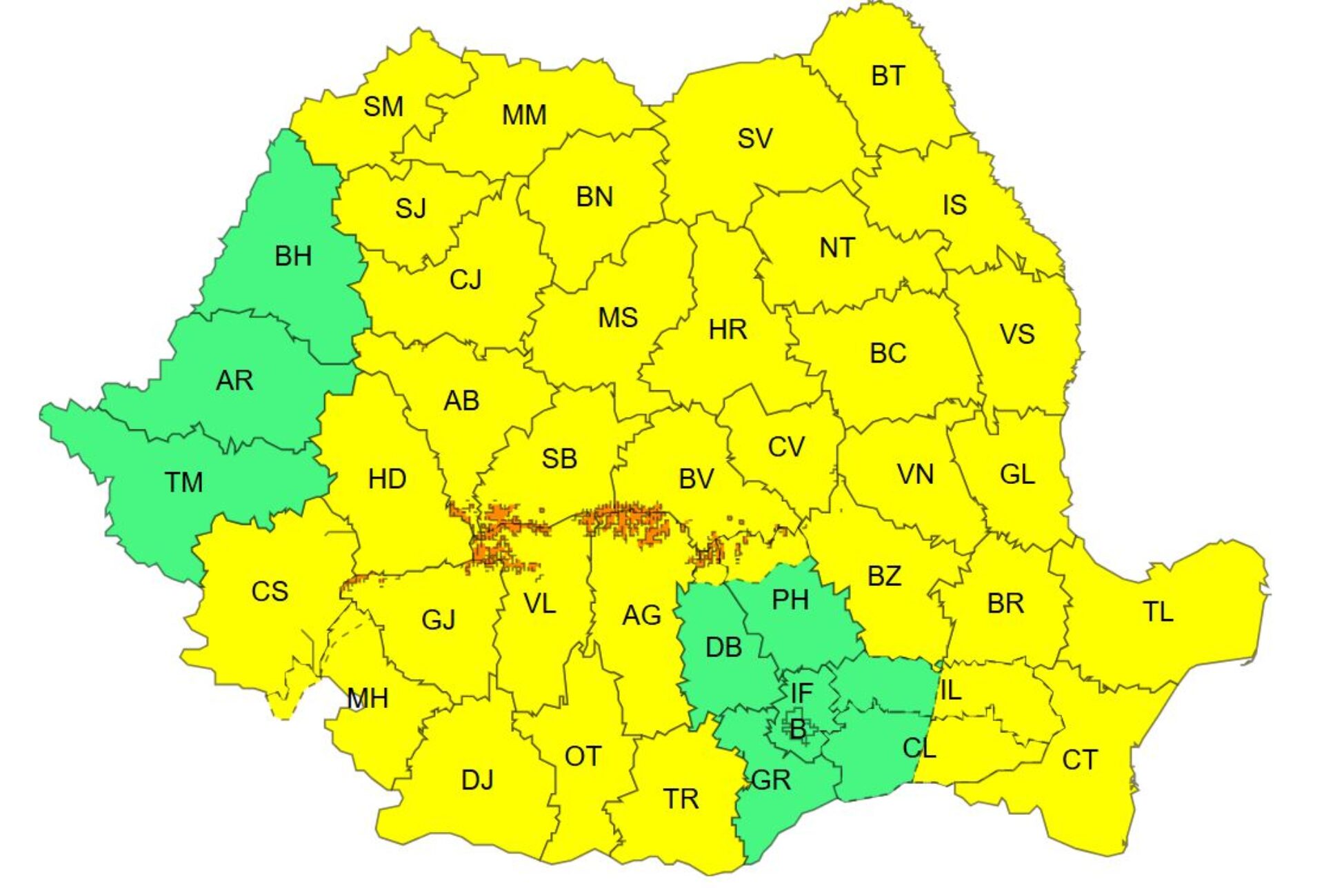 Cod galben de marți seara până miercuri seara